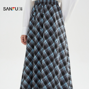 三福半身裙2025新款冬季巨好看的蕾丝拼接复古格子裙子女装509019