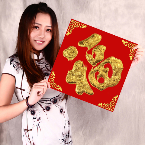 元旦烫金绒面福字斗方包邮门幅