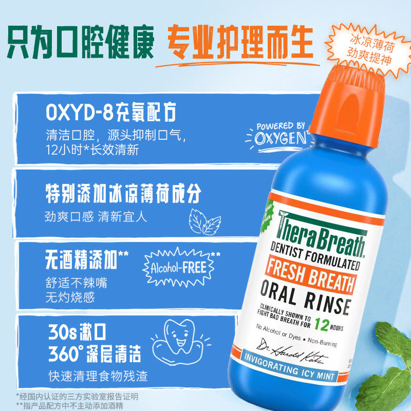 美国专业口腔护理品牌·TheraBreath凯斯博士,专业充氧,随时随地清新口气,温和薄荷持久清新
