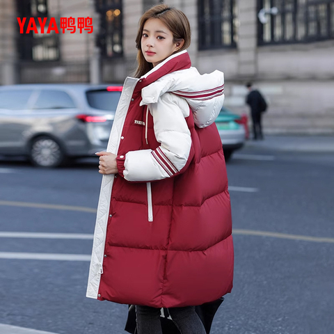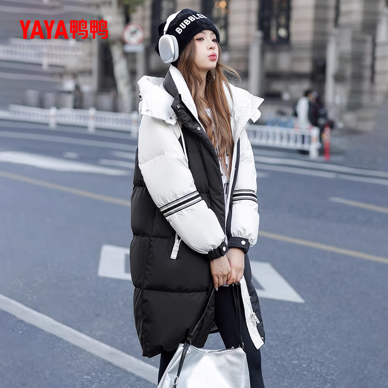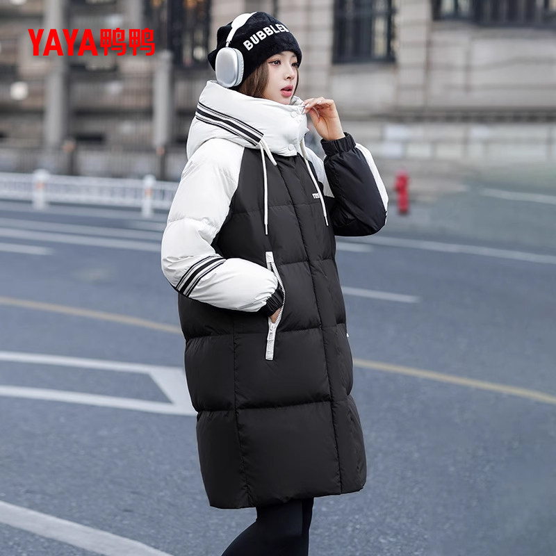 鸭鸭撞色系列中长款!90高蓬松鸭绒!百次检验!3层高密度锁绒!立领可拆卸帽设计!H版型设计!时尚百搭风格!宽松好搭配!保暖又时尚!天冷必备!