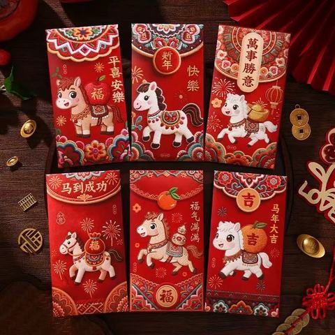 【多款可选9.9亓到手30个】手绘插画风格+平面刺绣质感,将传统祝福融入现代可爱设计,精致刺绣纹理细节,触摸得到的新春心意,春节压岁钱・新年礼物・公司福利・婚礼回礼,让萌马带着刺绣祝福,跑进千家万户的团圆时刻~