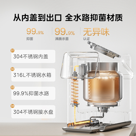 美的小魔方plus电热水壶,316L不锈钢恒温即热饮水机大容量电热水瓶