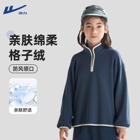 回力女童秋套装2025新款秋装女孩衣服加绒运动格子绒卫衣大童女装