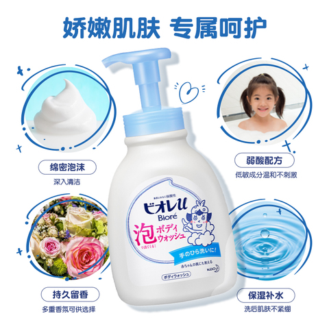立减9.3淘金币2.31到手35.69,花王碧柔儿童沐浴露,绵密泡泡,温和弱酸性,滋润不紧绷,娇嫩肌肤专属呵护