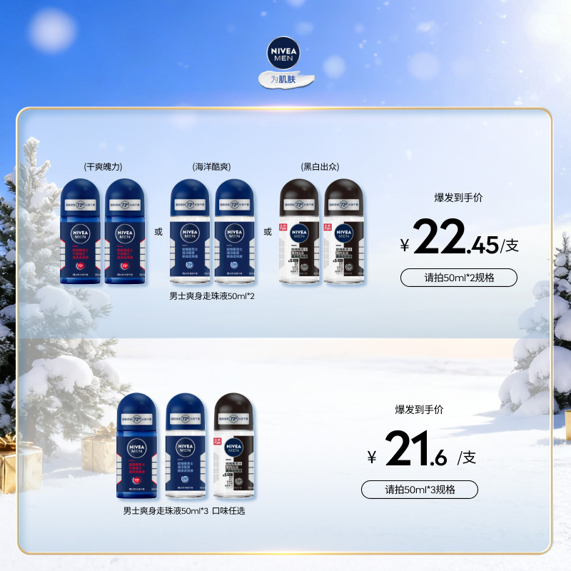 妮维雅男士专用腋下滚珠持久除臭去异味爽身止汗露