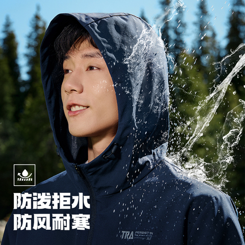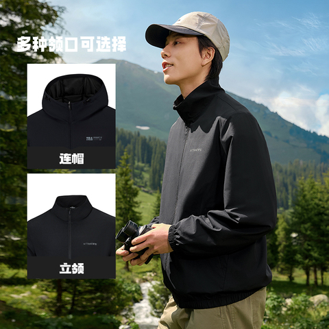 361三防外套2025秋冬户外防泼水梭织冲锋运动夹克男连帽立领风衣
