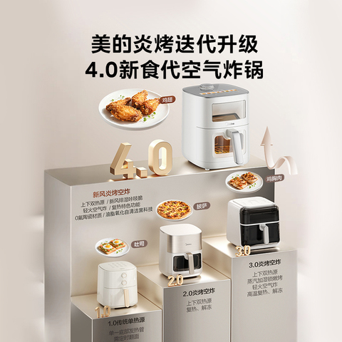 美的新风炎烤空气炸锅,家用2025新款多功能电烤箱双可视智能电炸锅