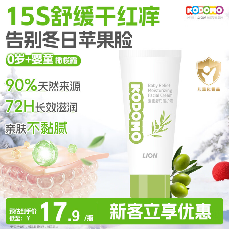 狮王(Lion)小狮王宝宝舒润倍护霜10g护肤
