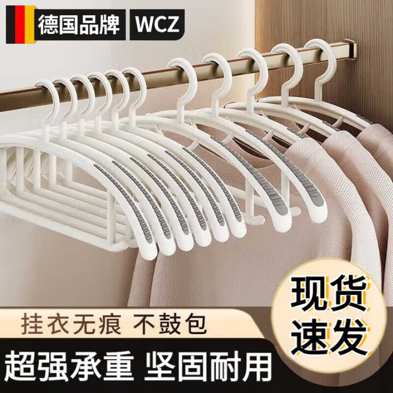 WCZ德国防滑衣架家用挂衣宽肩衣撑加粗加厚防肩角晾衣架衣服挂架无痕 奶油白升级硅胶防滑款(护衣加强ABS材质) 20个