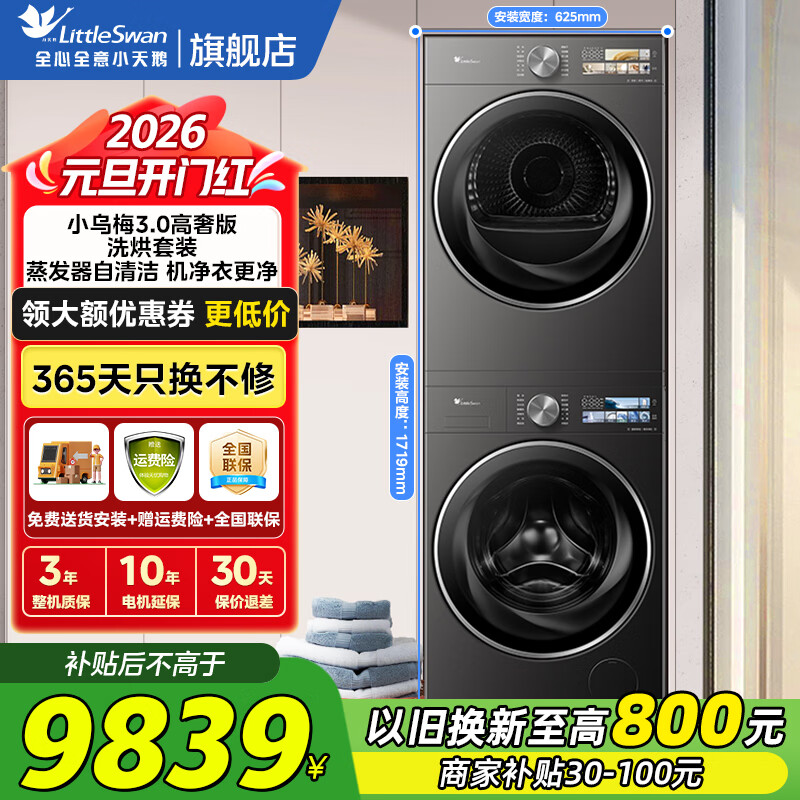 小天鹅(LittleSwan)小乌梅3.0洗烘套装10KG全自动滚筒洗衣机+10KG变频热泵烘干机 纯平全嵌一级能效 TG10VE40+TH10VE40