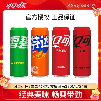 【可口可乐】雪碧芬达零度可乐330ml*24罐碳酸饮料汽水细长罐整箱包邮