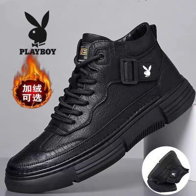 【花花公子】男鞋2025新款运动休闲皮鞋男软底软面防滑耐磨马丁靴男潮