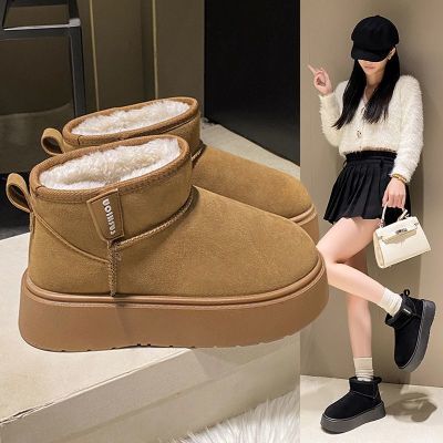 雪地靴女冬季2025新款厚底时尚网红加绒加厚外穿防滑保暖棉鞋短筒