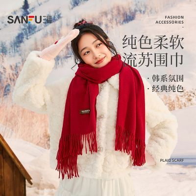 三福纯色柔软流苏长巾围巾 经典简约服饰配件配饰围脖847004
