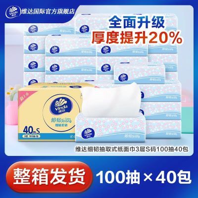 【维达】抽纸细韧40包S码3层100抽加厚面巾纸家用整箱纸抽学生宿舍