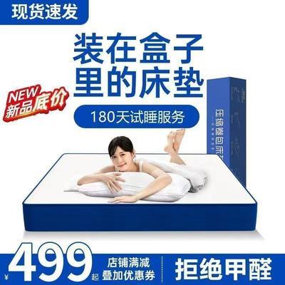 海马蓝色记忆棉盒子床垫席梦思乳胶弹簧床垫1.8M家用学生民宿