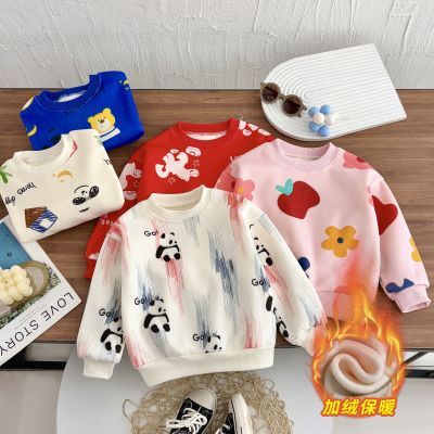 儿童秋冬加绒加厚宝宝卫衣时尚套头洋气男童毛衣圆领宽松保暖女童