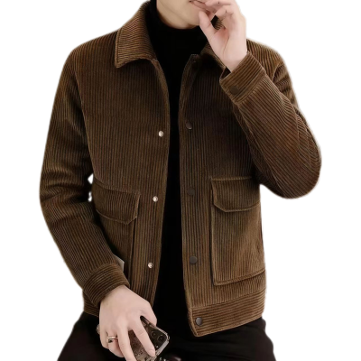 大牌清仓高档男士灯芯绒新款潮流外套翻领加厚休闲爸爸中年夹克【3月26日发完】