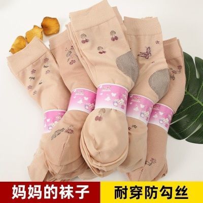 中老年夏天丝袜带后奶奶袜子夏季松口薄款中筒老式妈妈老人提花20