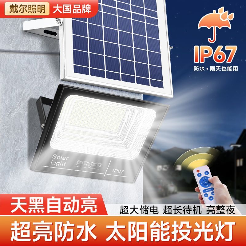 戴尔太阳能投光灯新款农村庭院天黑自动亮户外家用太阳能照明灯具