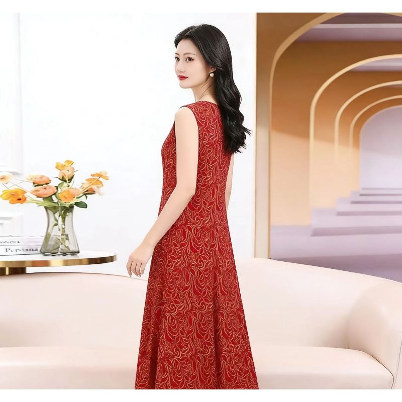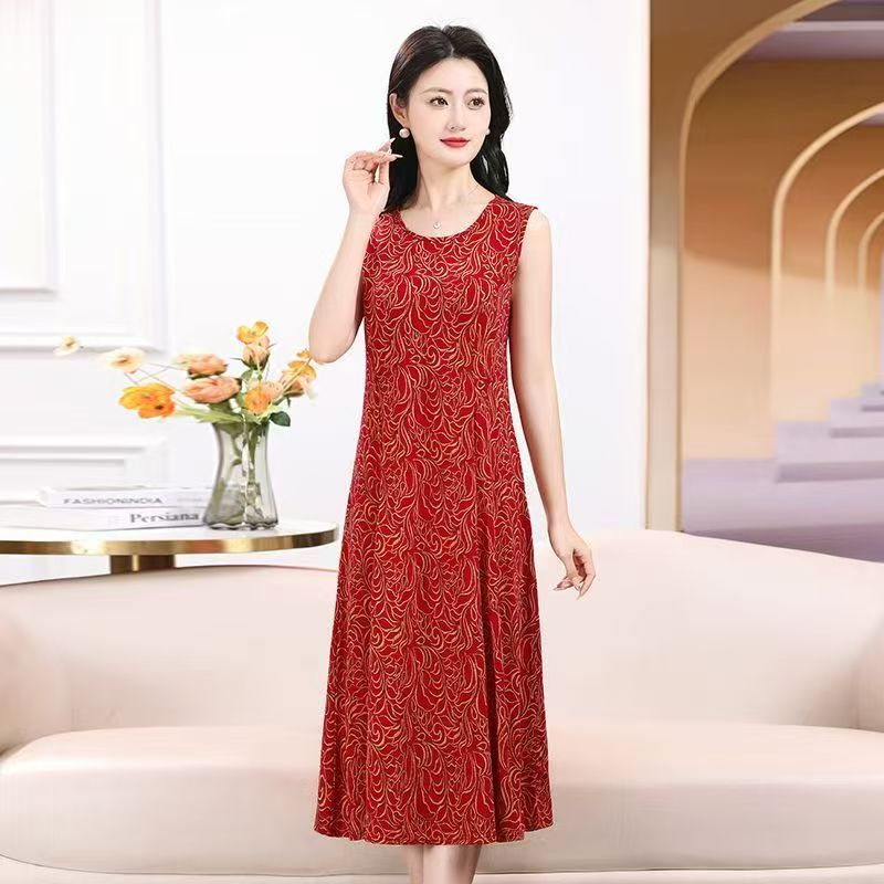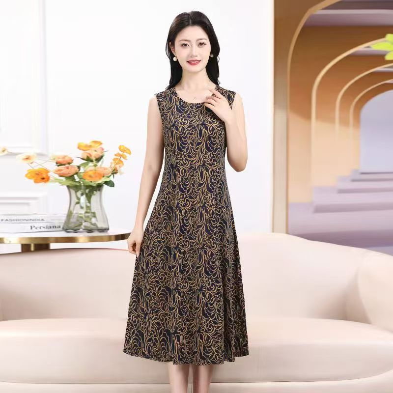 中老年女装夏季妈妈装冰丝大码遮肚长裙遮肚显瘦中年女装夏季