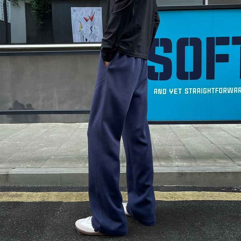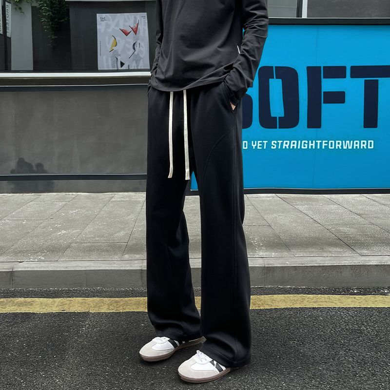 斜切运动弯刀卫裤男美式高街宽松直筒微喇休闲裤纯色显瘦运动长裤【2月28日发完】