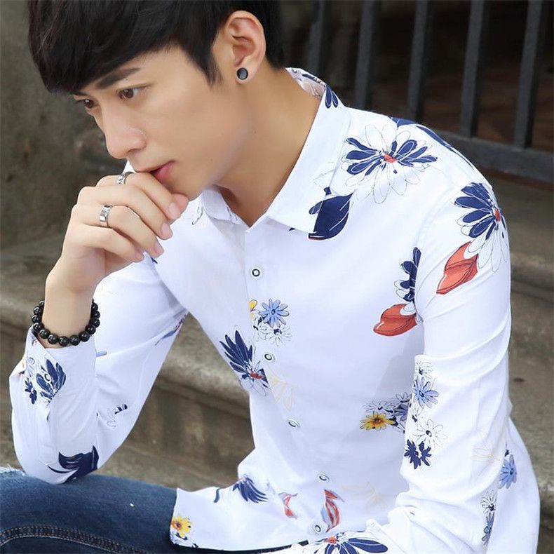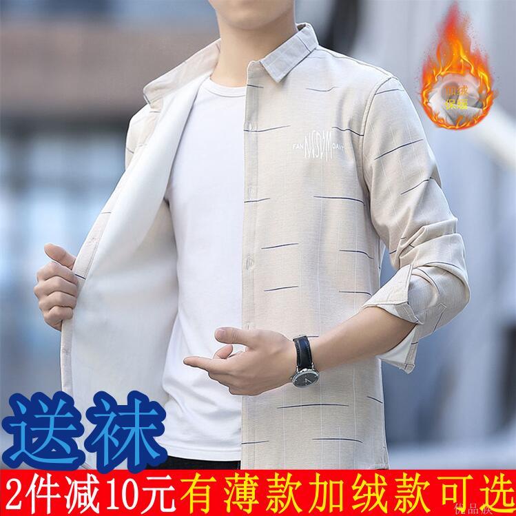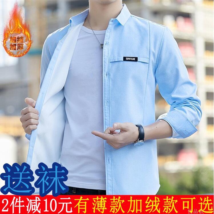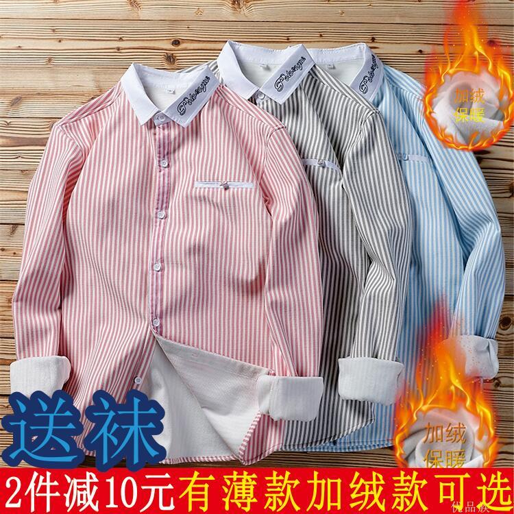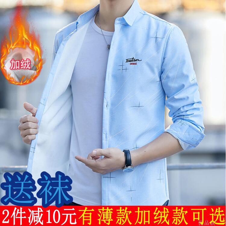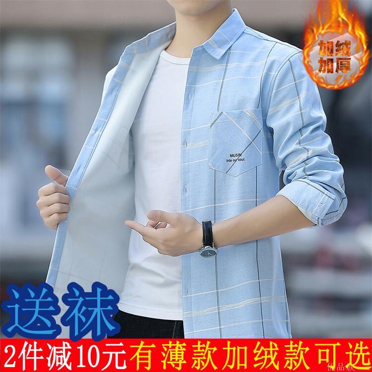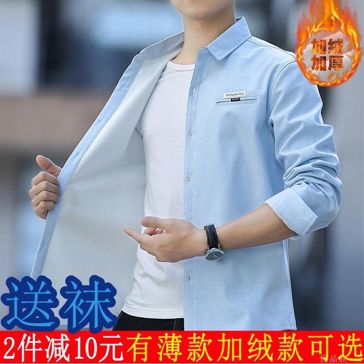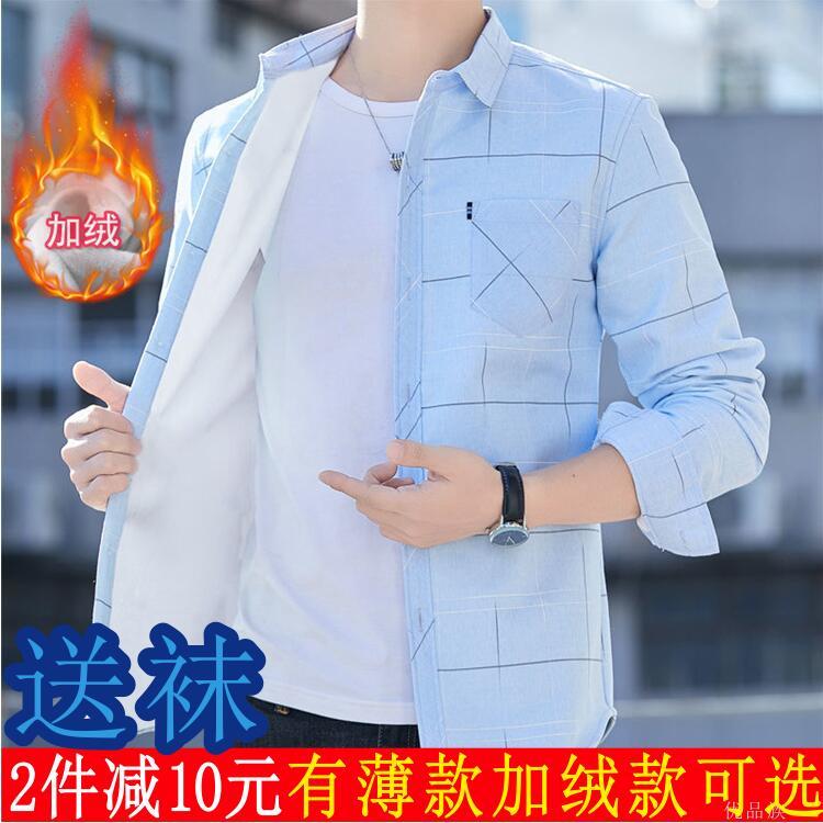 新款长袖衬衫男青少年上衣男韩版修身纯棉男生短袖衬衣衬衫或袜子【7天内发货】
