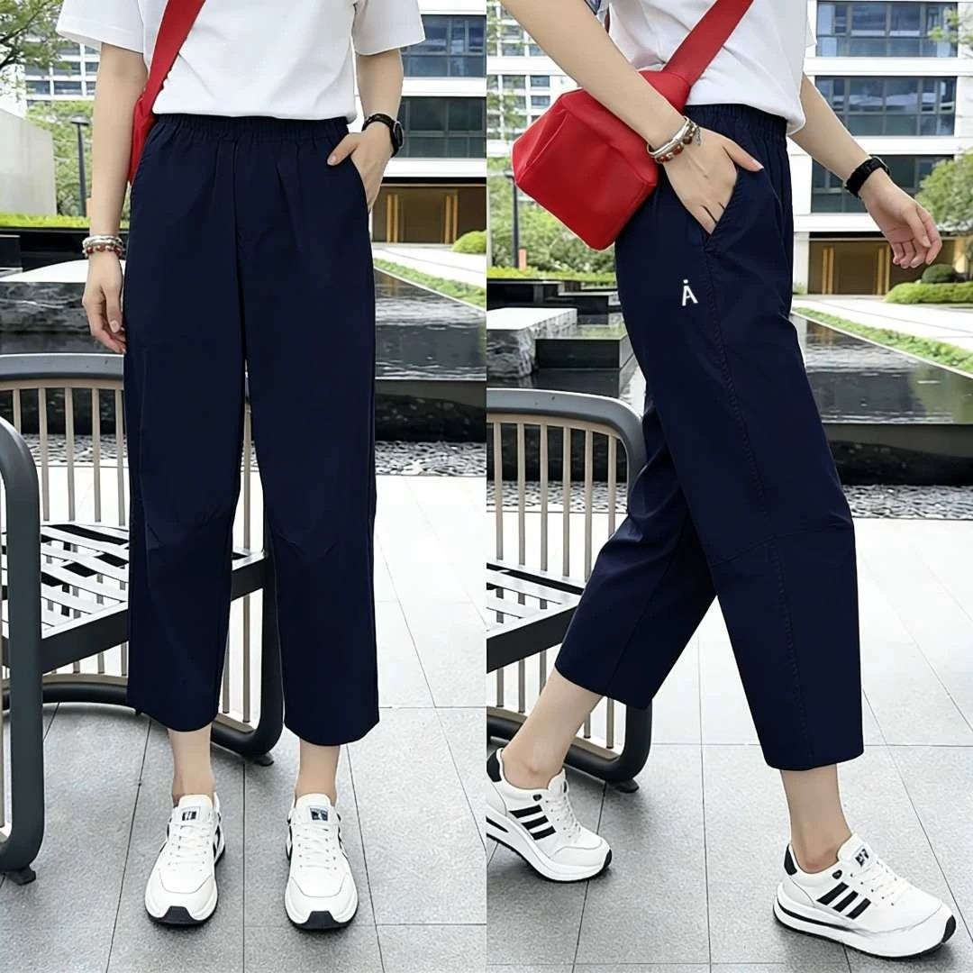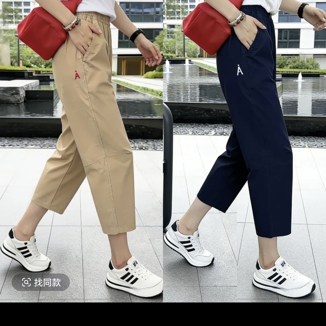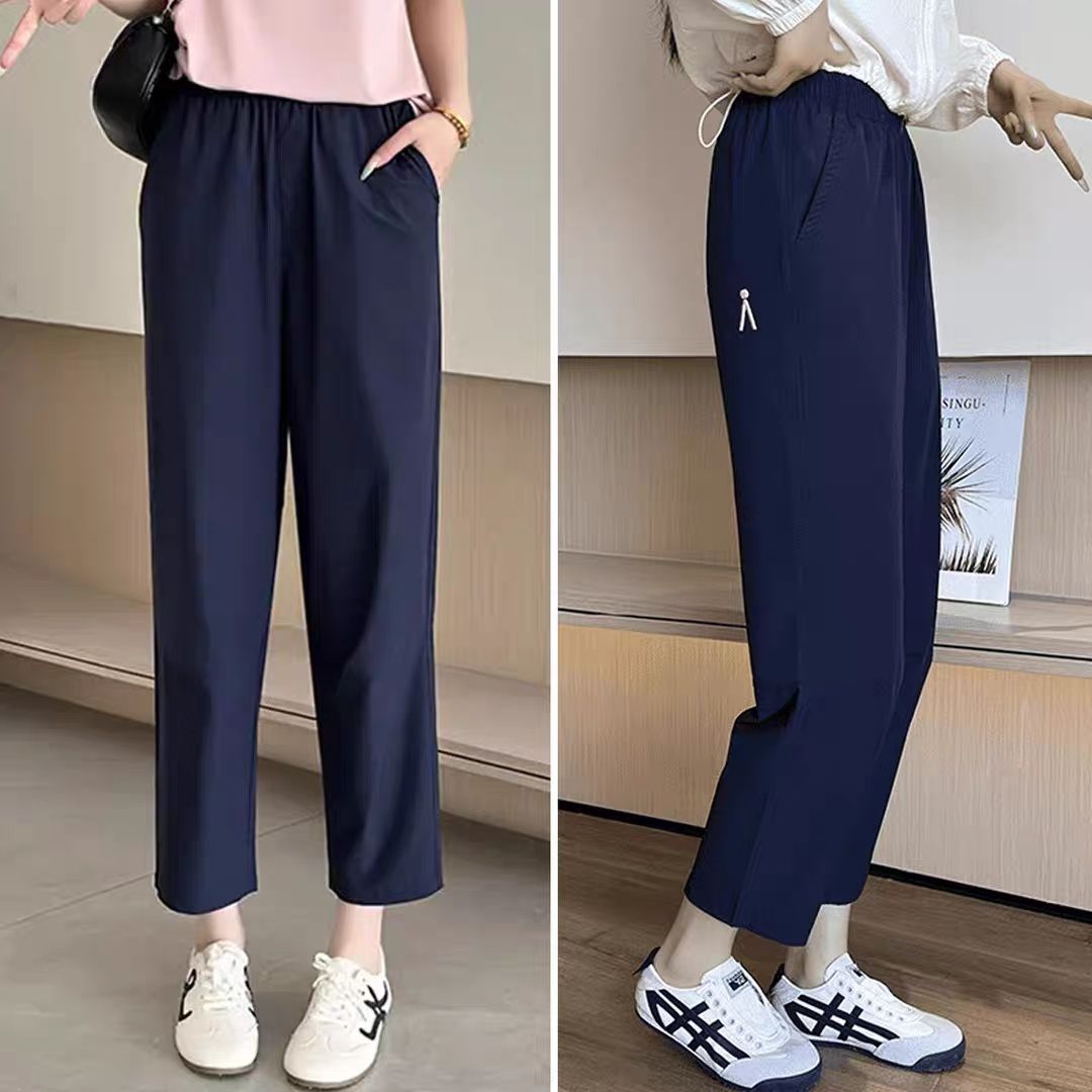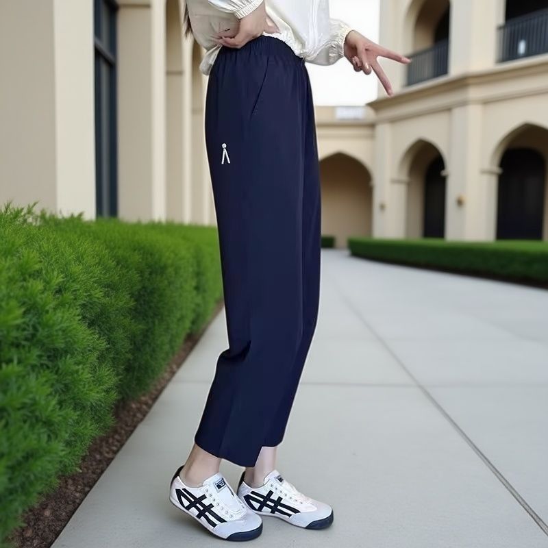 夏季新款冰丝速干裤运动裤薄款显瘦宽松休闲大码小个子八分哈伦裤