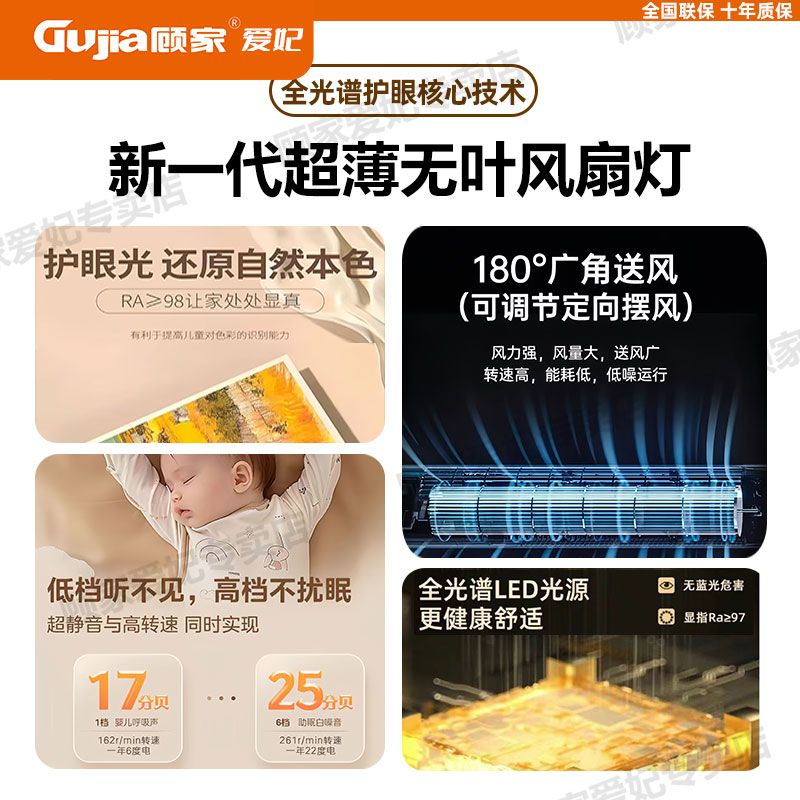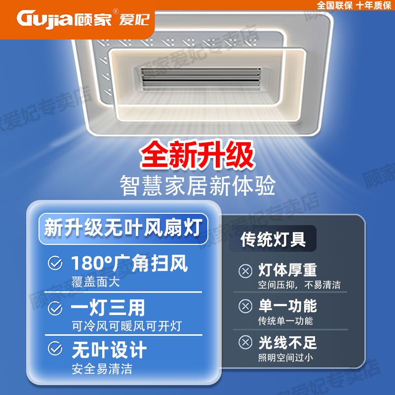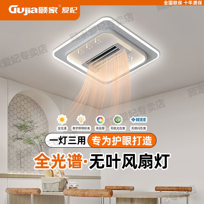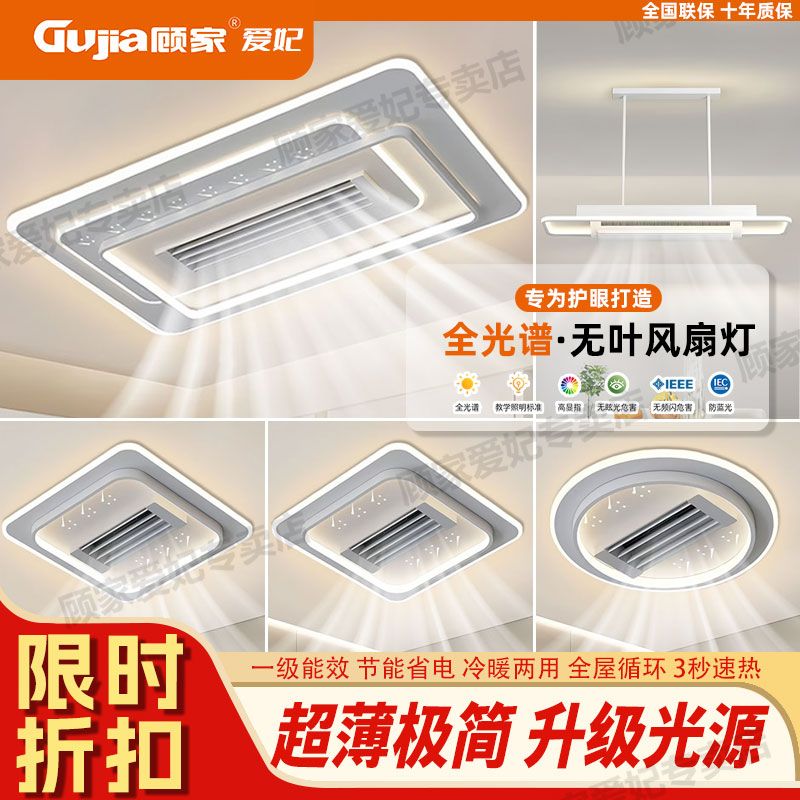 顾家冷暖风扇灯客厅风扇灯卧室无叶风扇冷暖两用套装餐组合吸顶灯