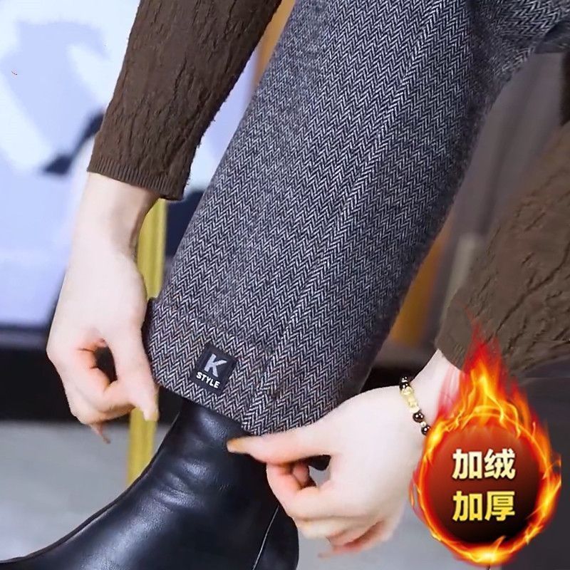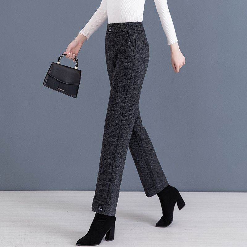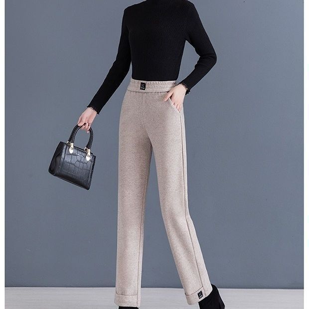 冬季裤子加绒呢子阔腿筒裤秋冬长裤外穿百搭九分裤子【15天内发货】