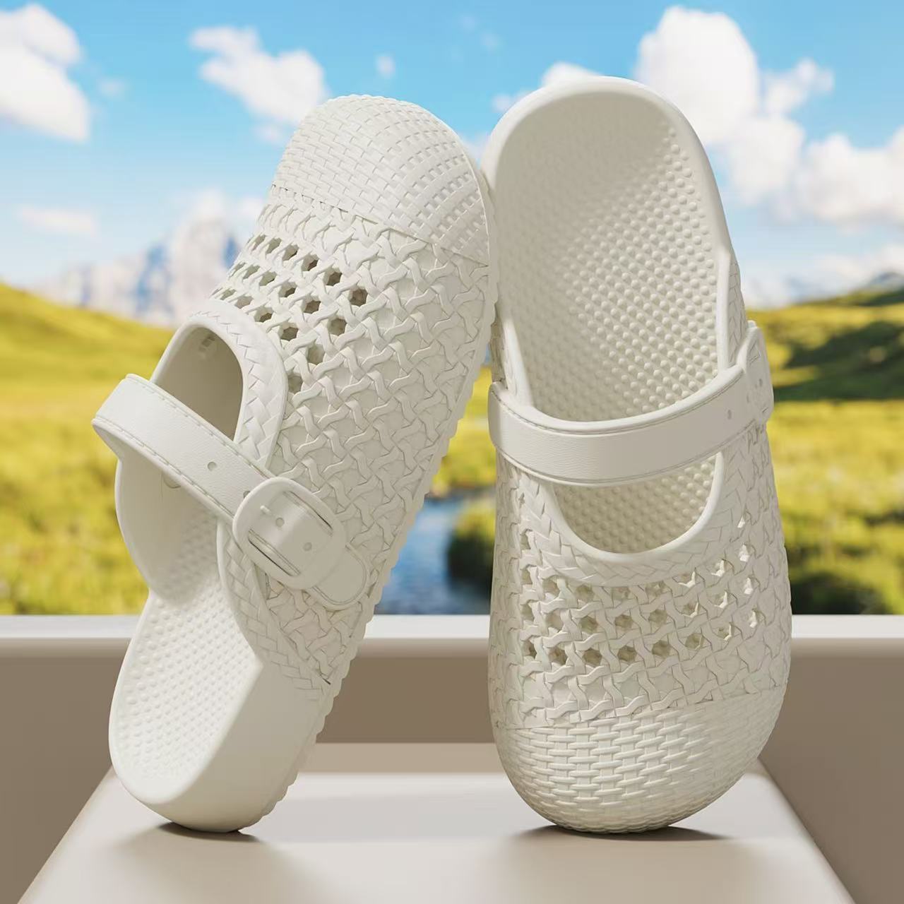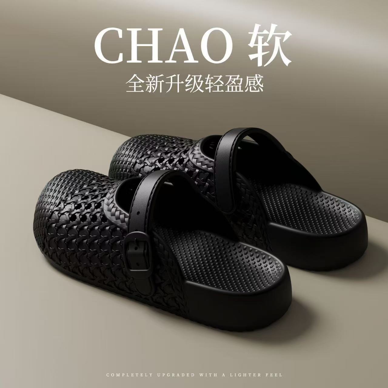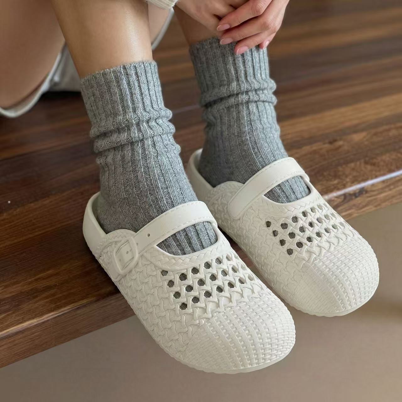 2026夏季新款百搭复古厚底包头半拖鞋女勃肯鞋编织镂空休闲凉拖鞋
