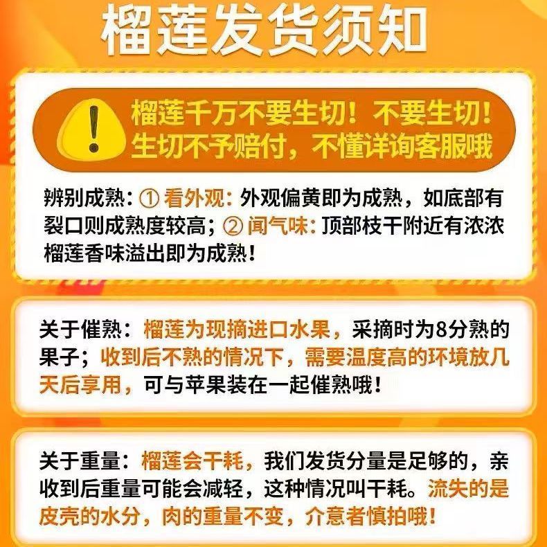 【正宗泰国金枕】香甜进口金枕榴莲新鲜带壳整箱水果鲜果包赔包邮