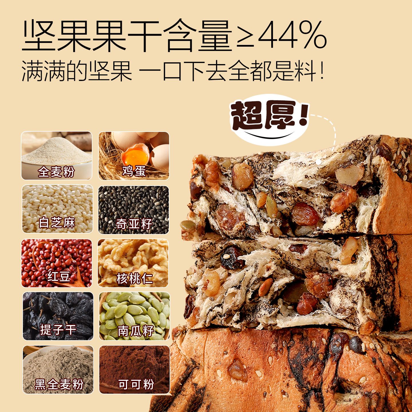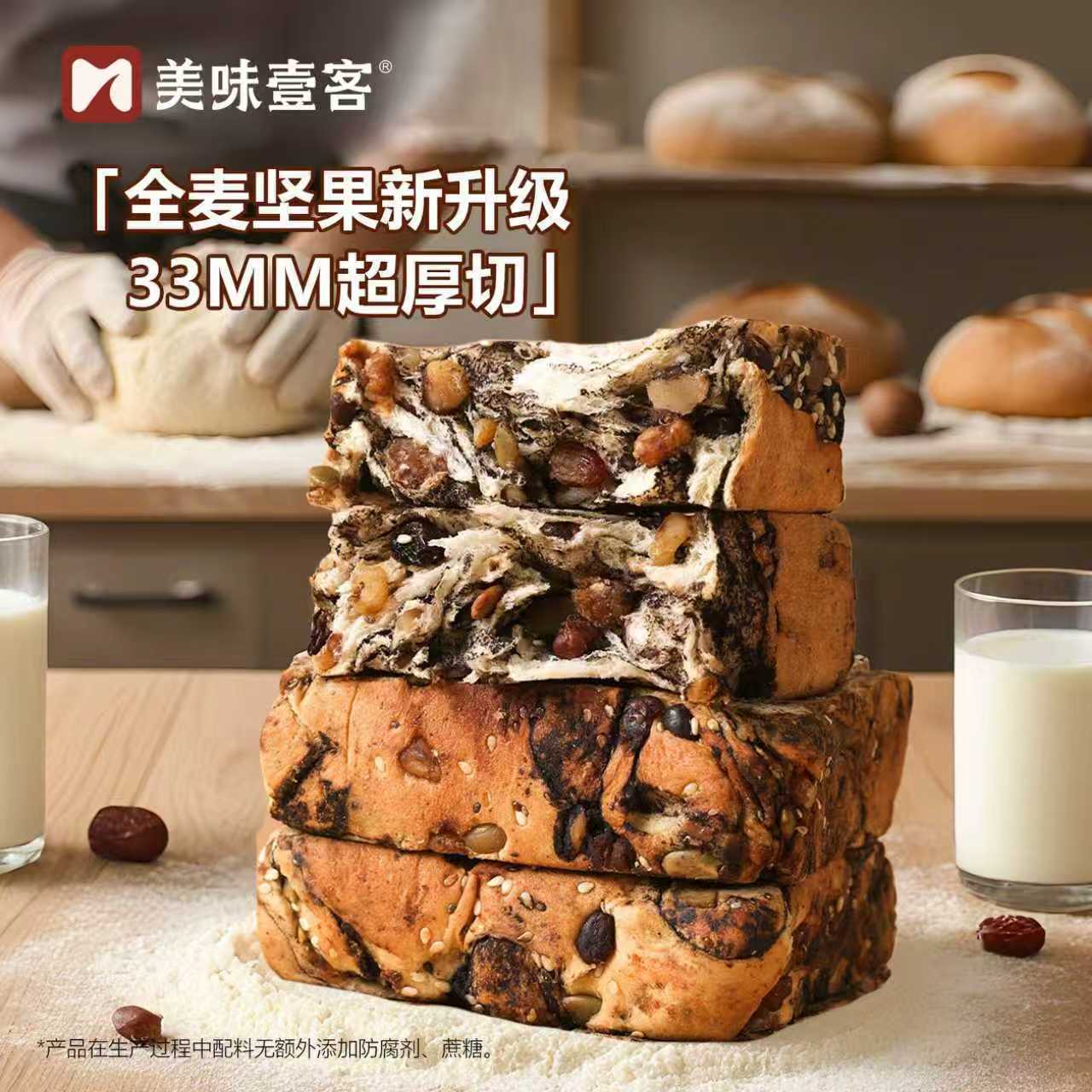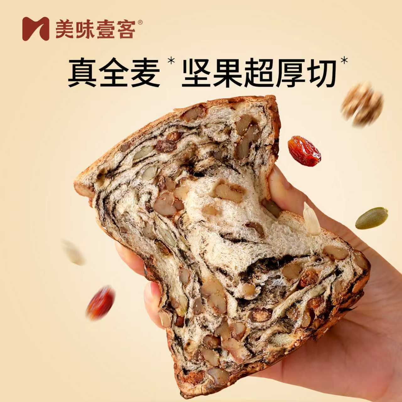 美味壹客全麦坚果吐司面包爆料千层厚切吐司手工制作早餐代餐零食