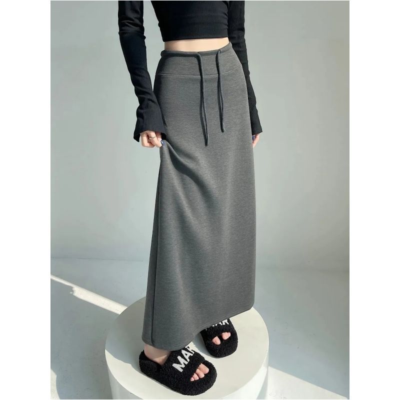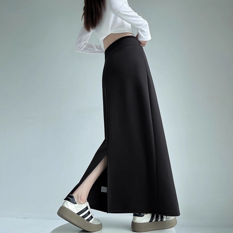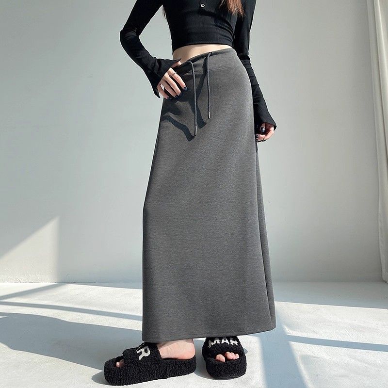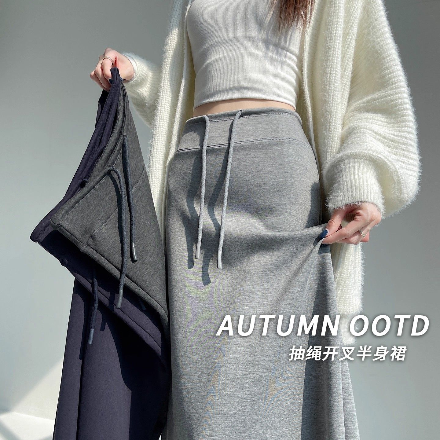 半身裙灰色运动直筒开叉高腰春秋新款字半裙垂坠感卫裙长长裙裙子