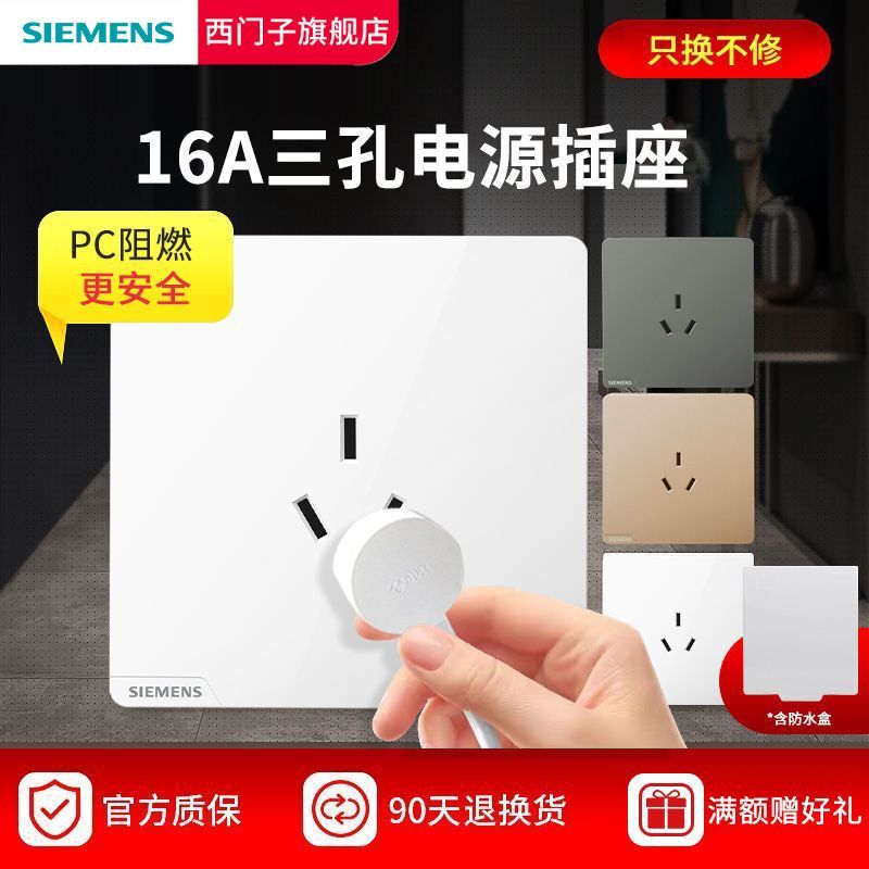 西门子开关插座面板16a三孔空调电源插座热水器大功率面板家用