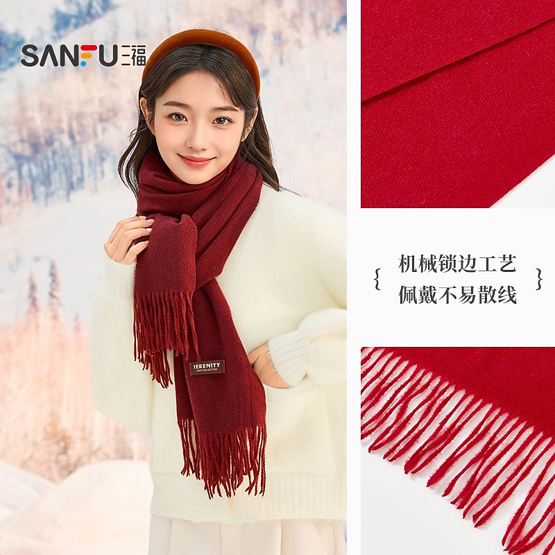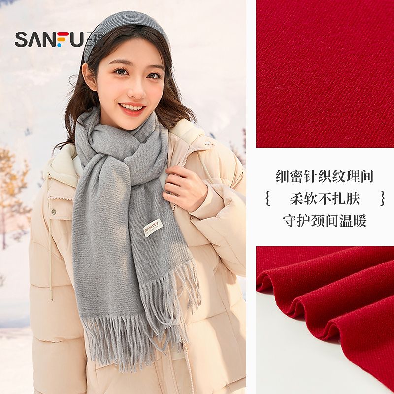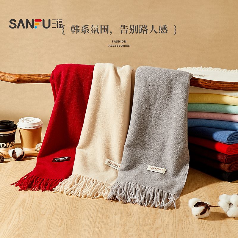 三福纯色柔软流苏长巾围巾 经典简约服饰配件配饰围脖847004