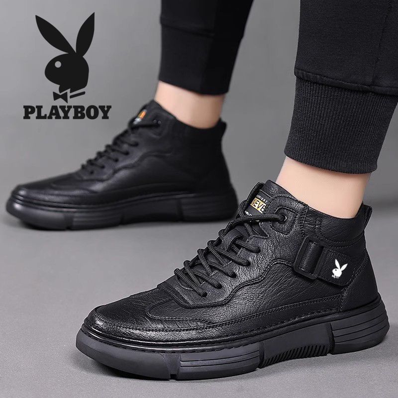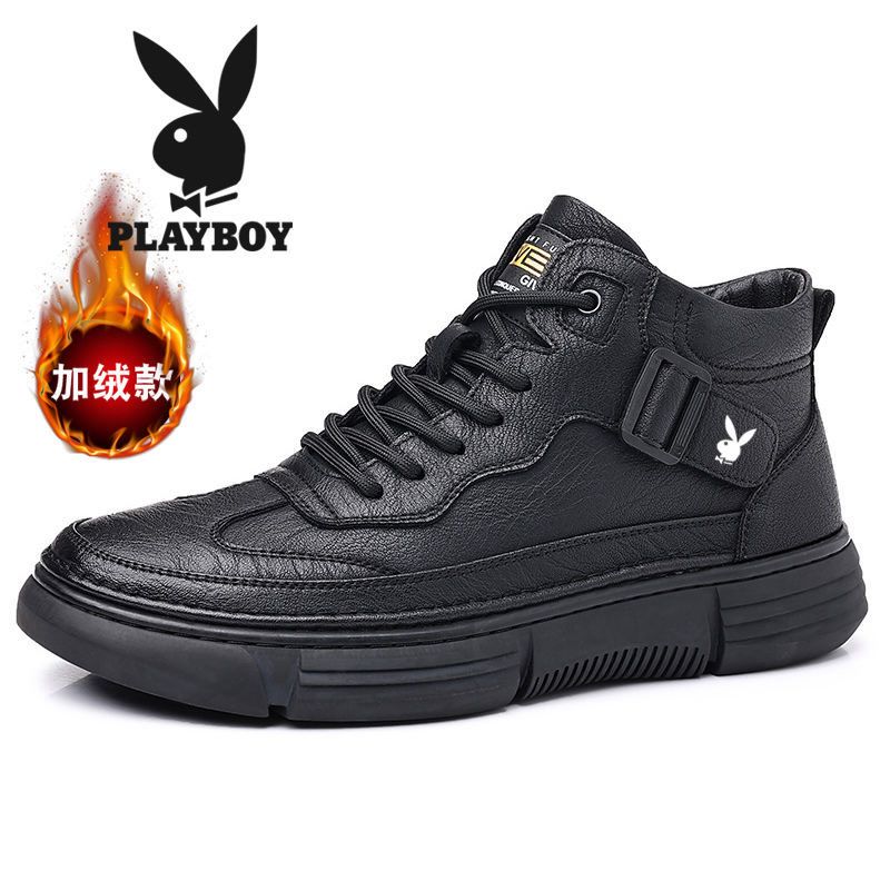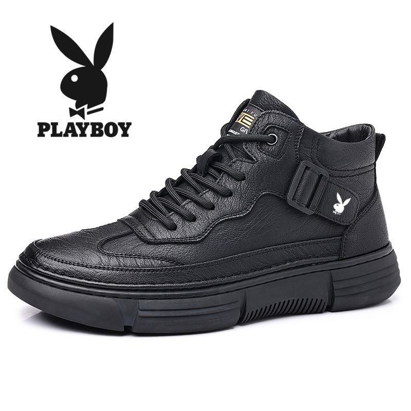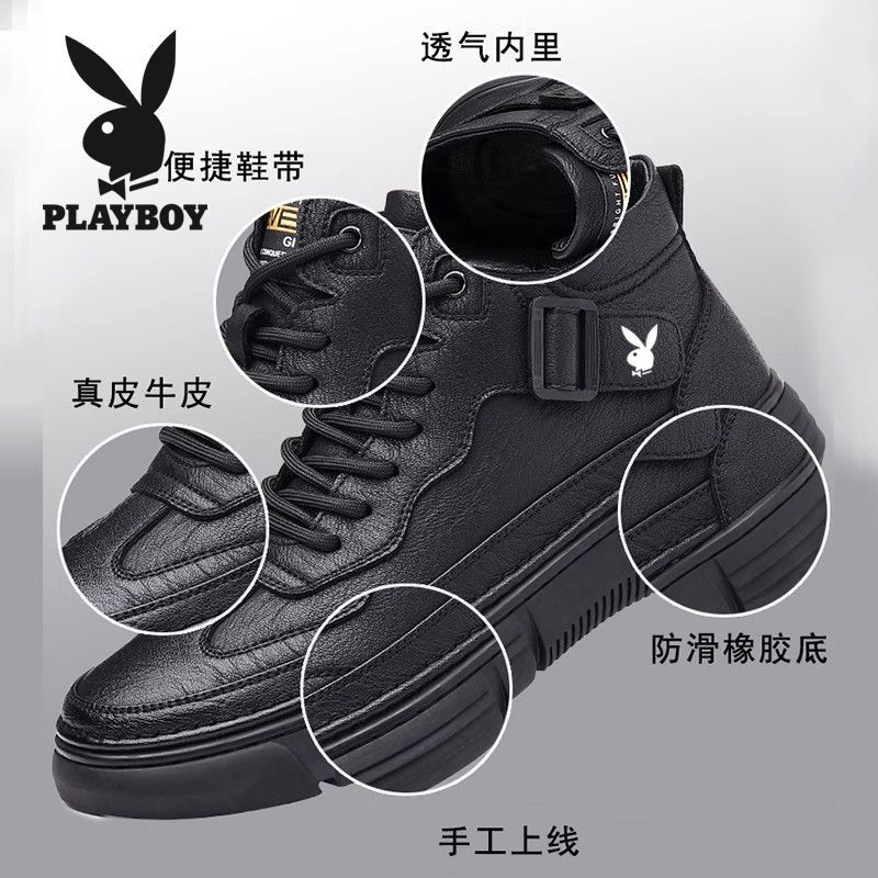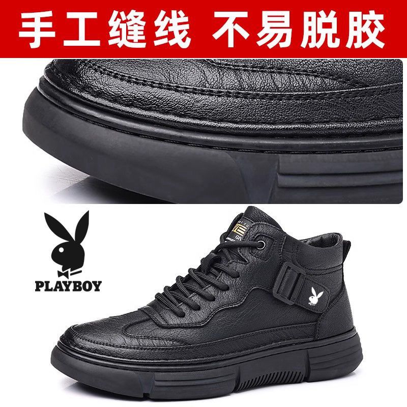 花花公子男鞋2025新款运动休闲皮鞋男软底软面防滑耐磨马丁靴男潮