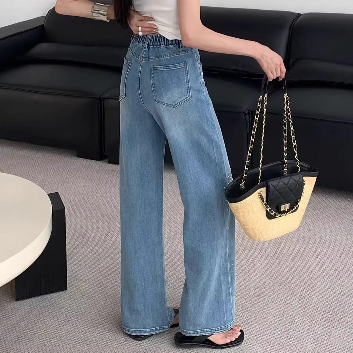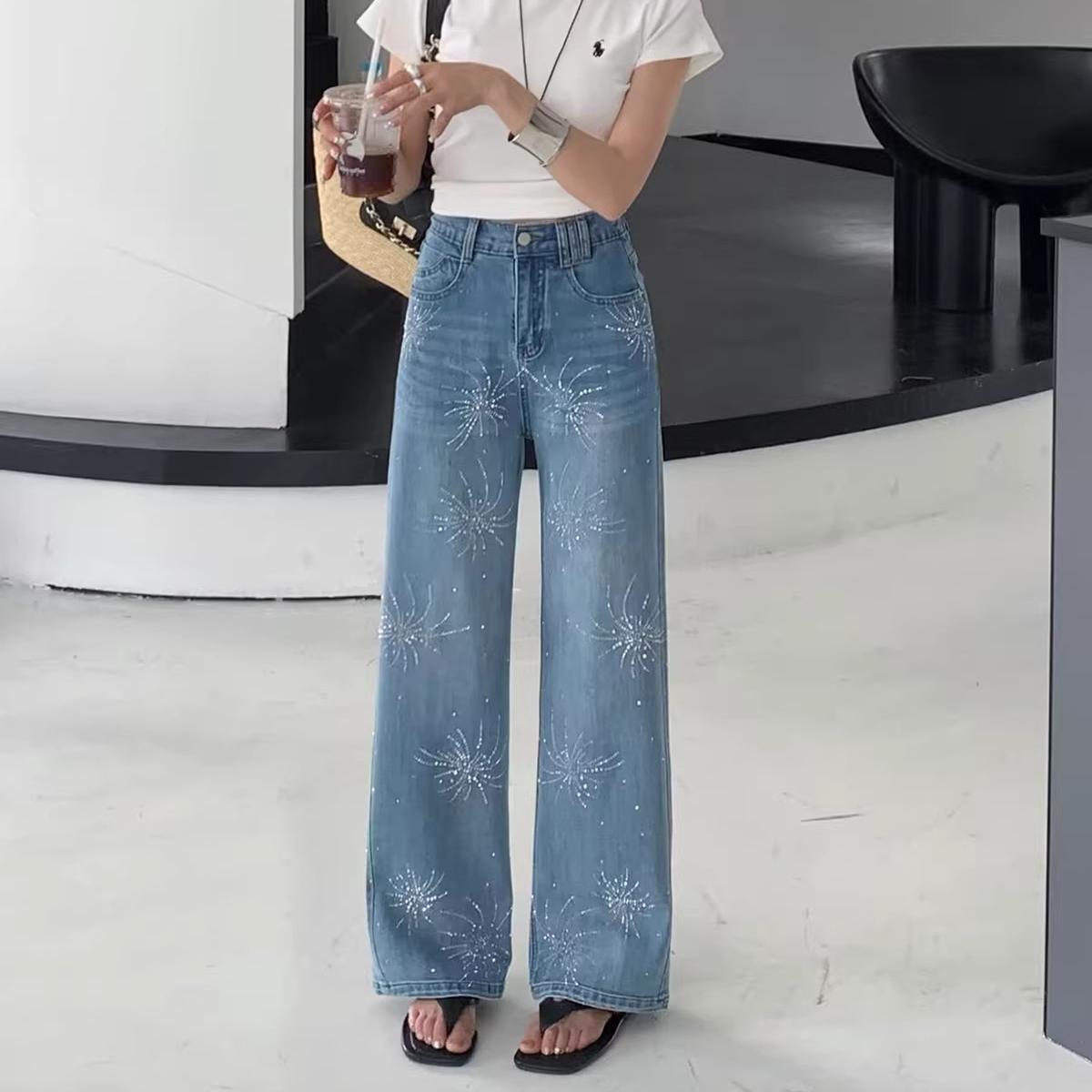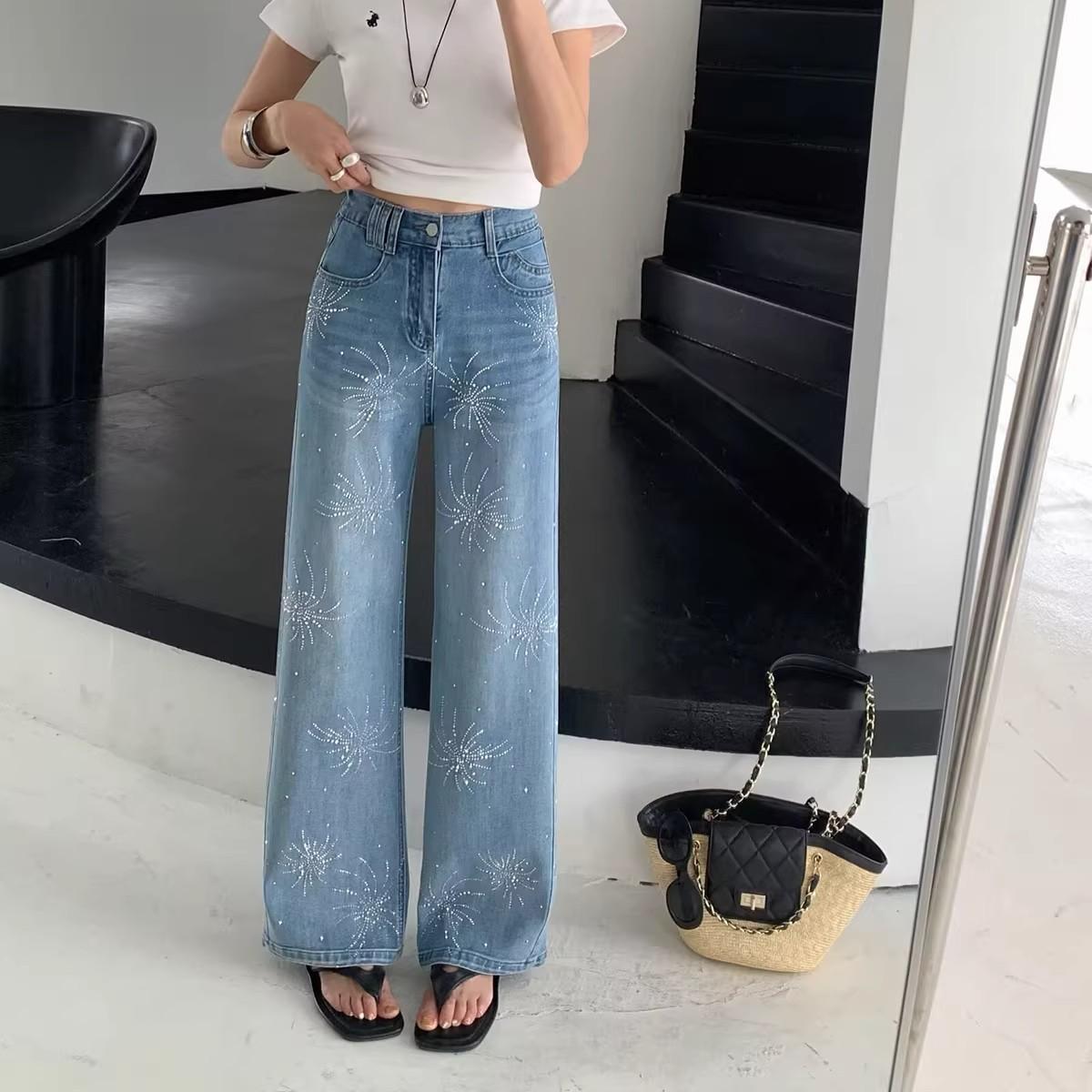 大码胖MM重工烫钻烟花直筒牛仔裤女春季2026年新款显瘦窄版阔腿裤