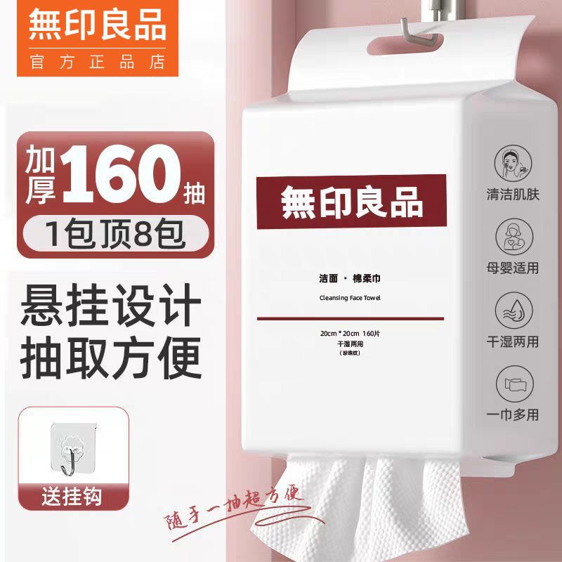 无印良品洗脸巾悬挂式棉柔巾超大包一次性擦脸巾加大加厚家庭装