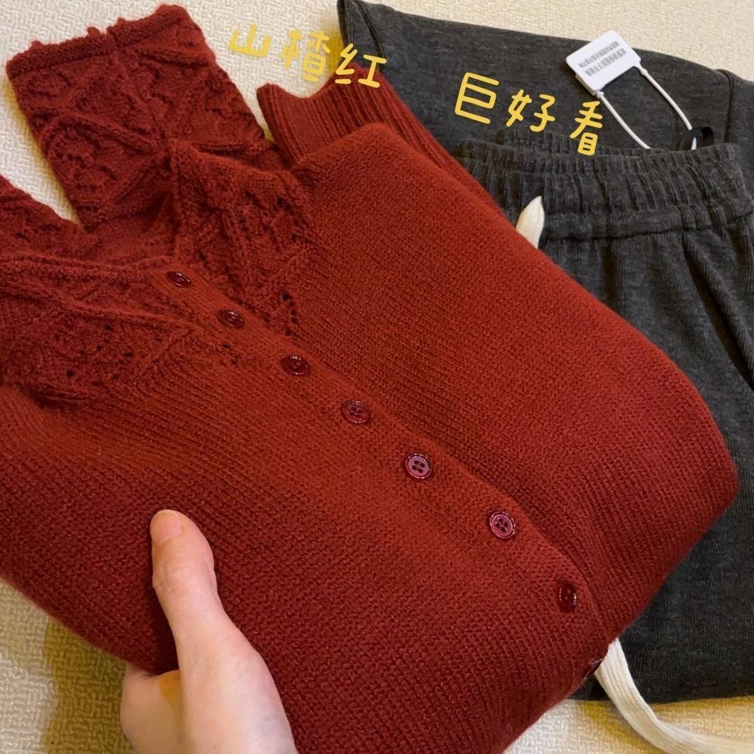 正品撤柜羊毛衫保暖重工钩花设计针织开衫秋冬新款外套气质毛衣