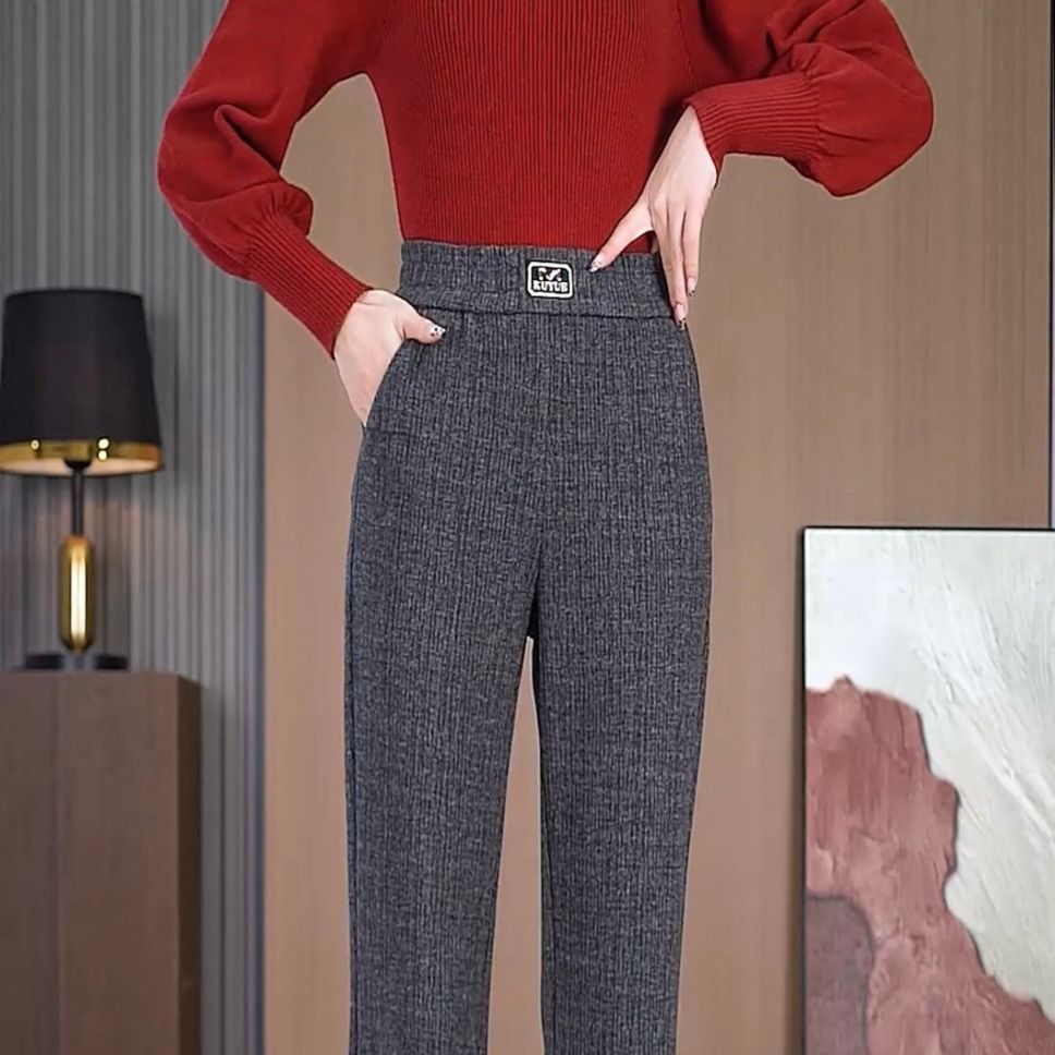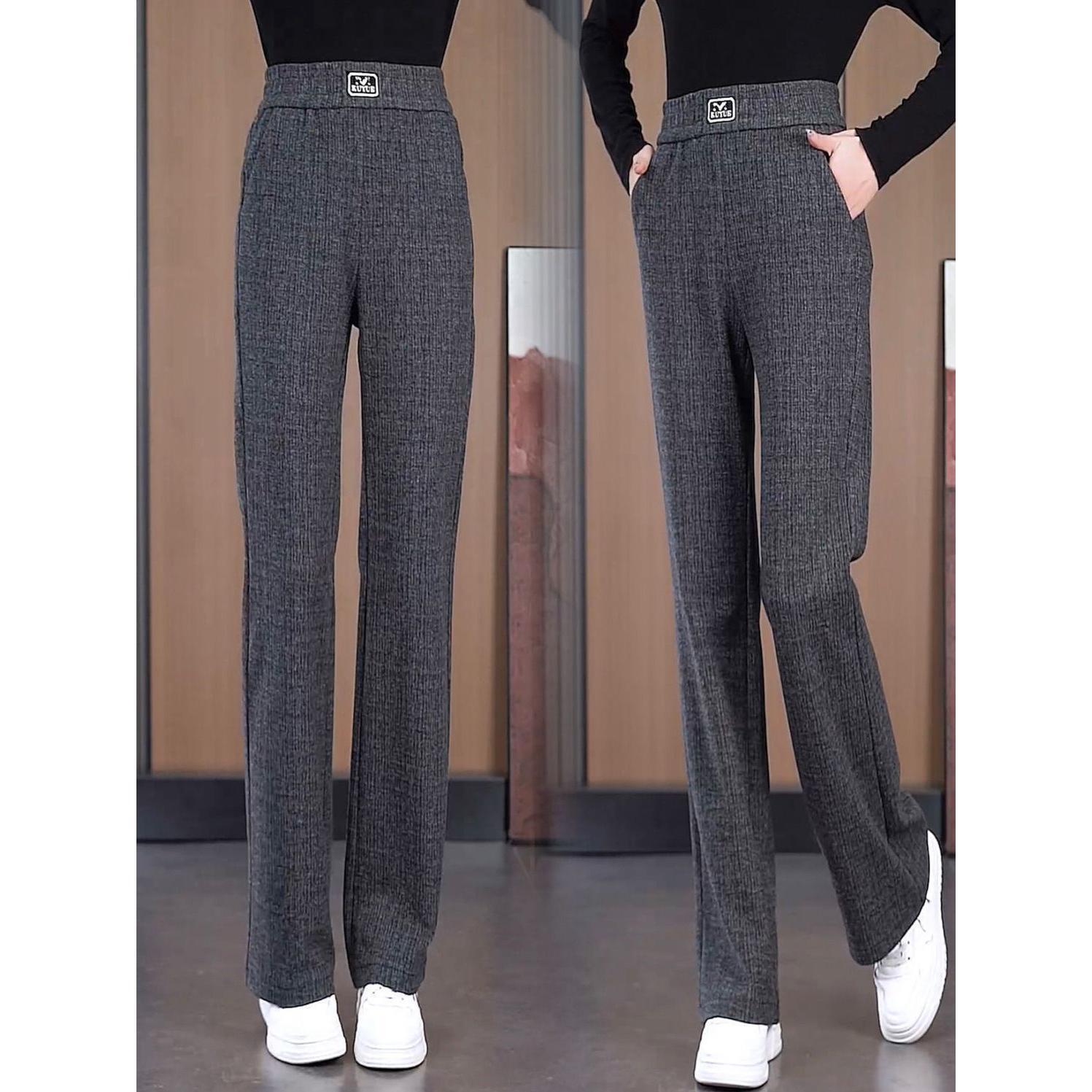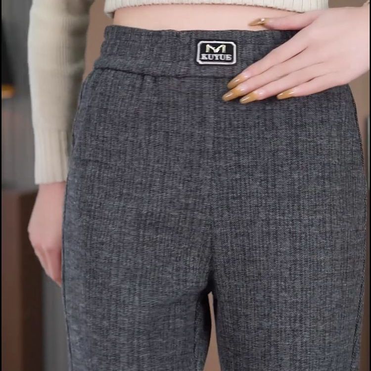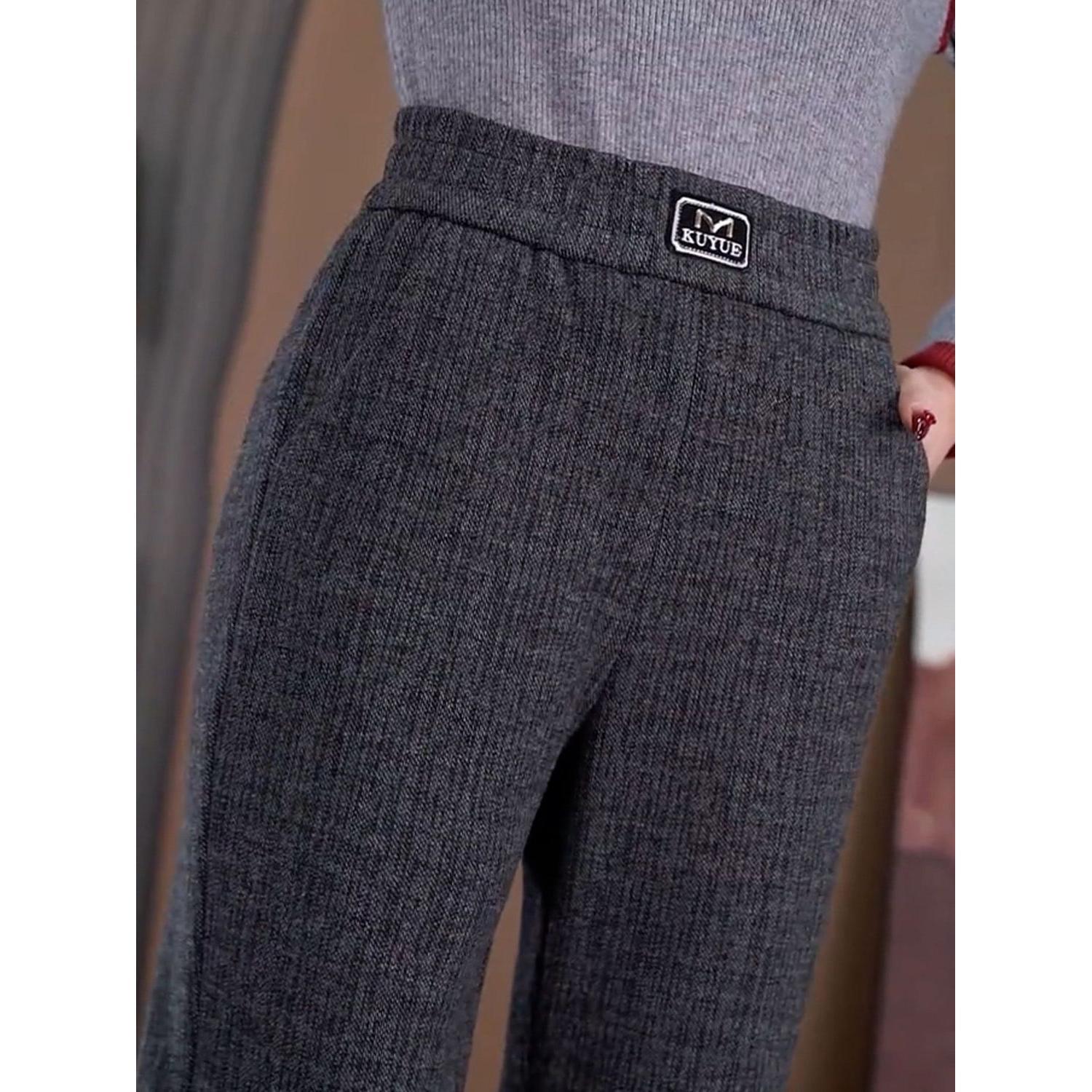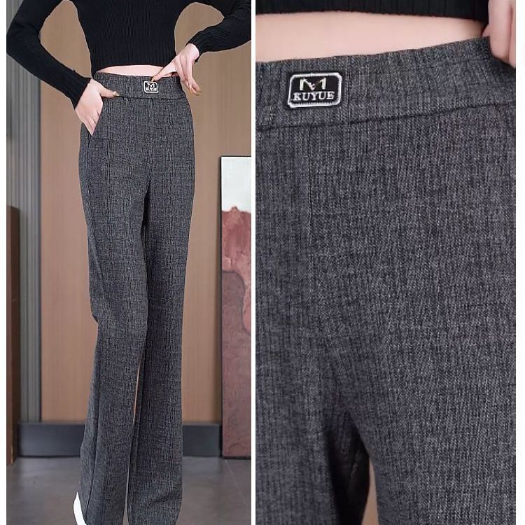 灰色微喇裤子女秋冬新款加绒加厚高腰百搭修身显瘦窄版休闲喇叭裤【3月10日发完】