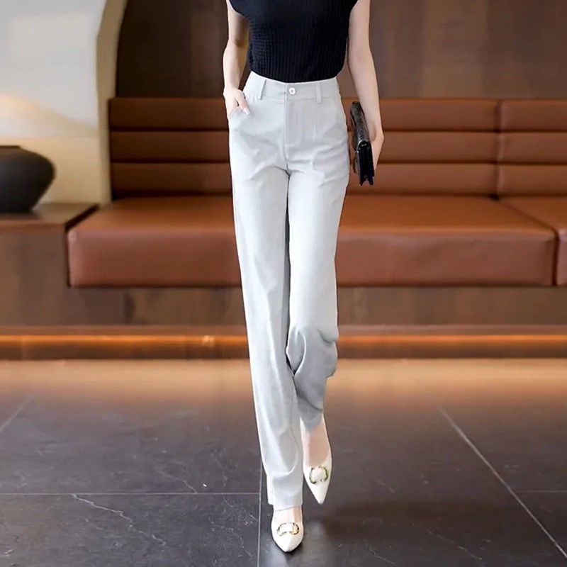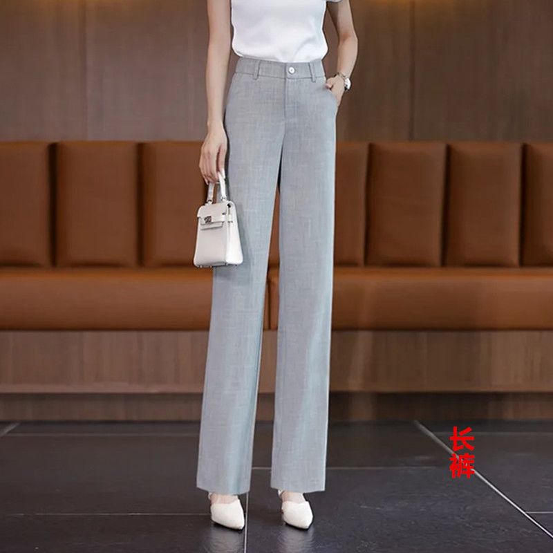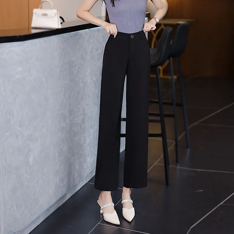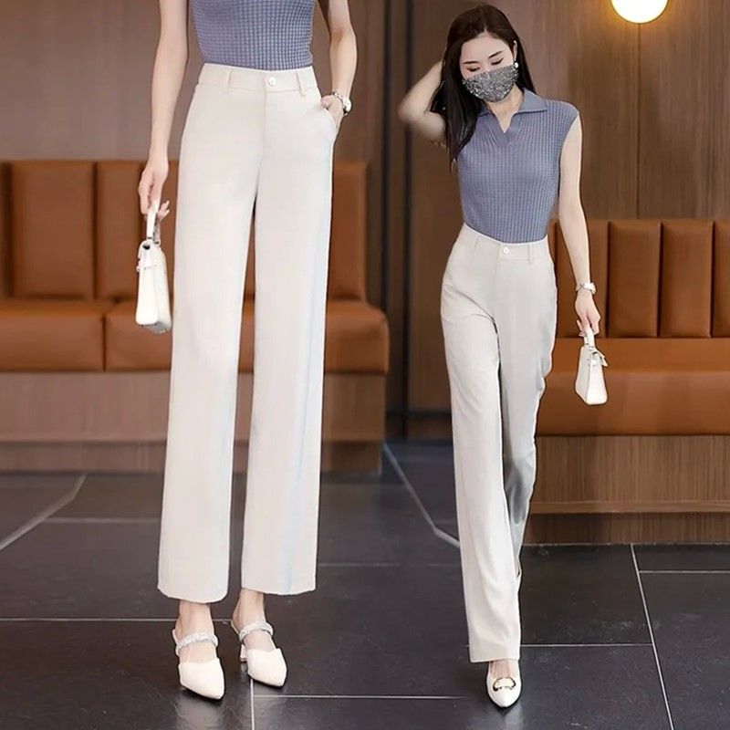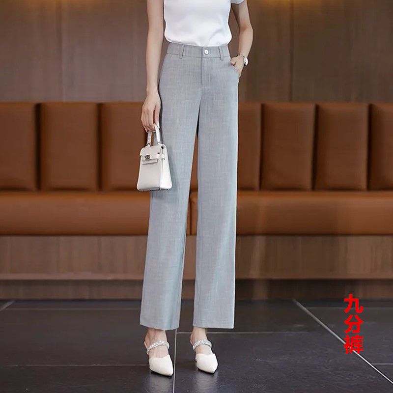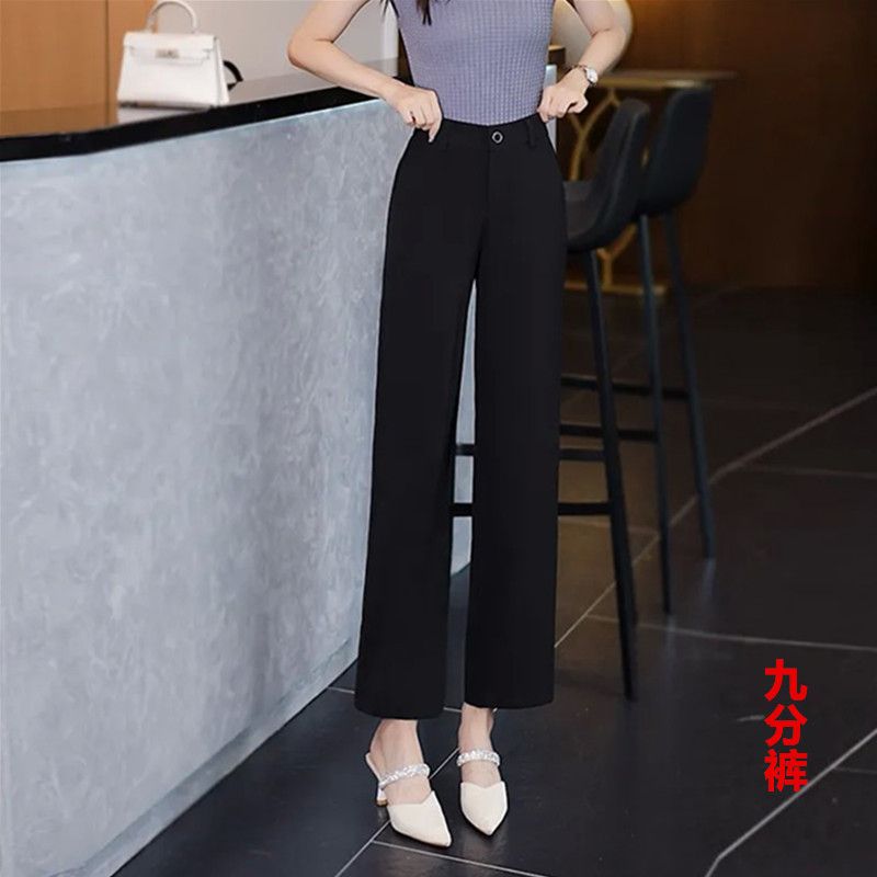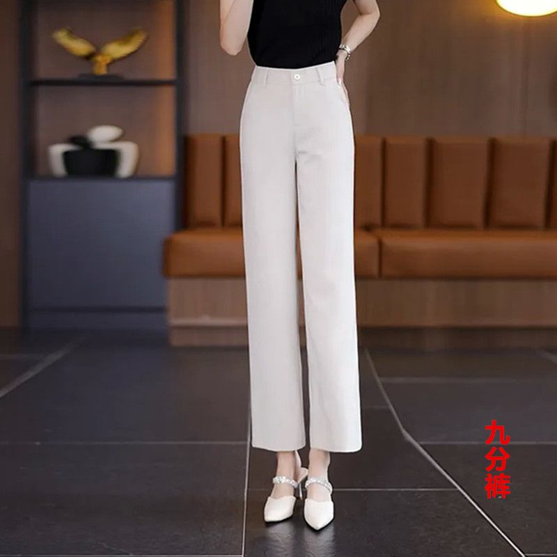 新中式夏季冰感薄款高腰窄版阔腿裤垂感宽松九分裤冰丝直筒休闲裤