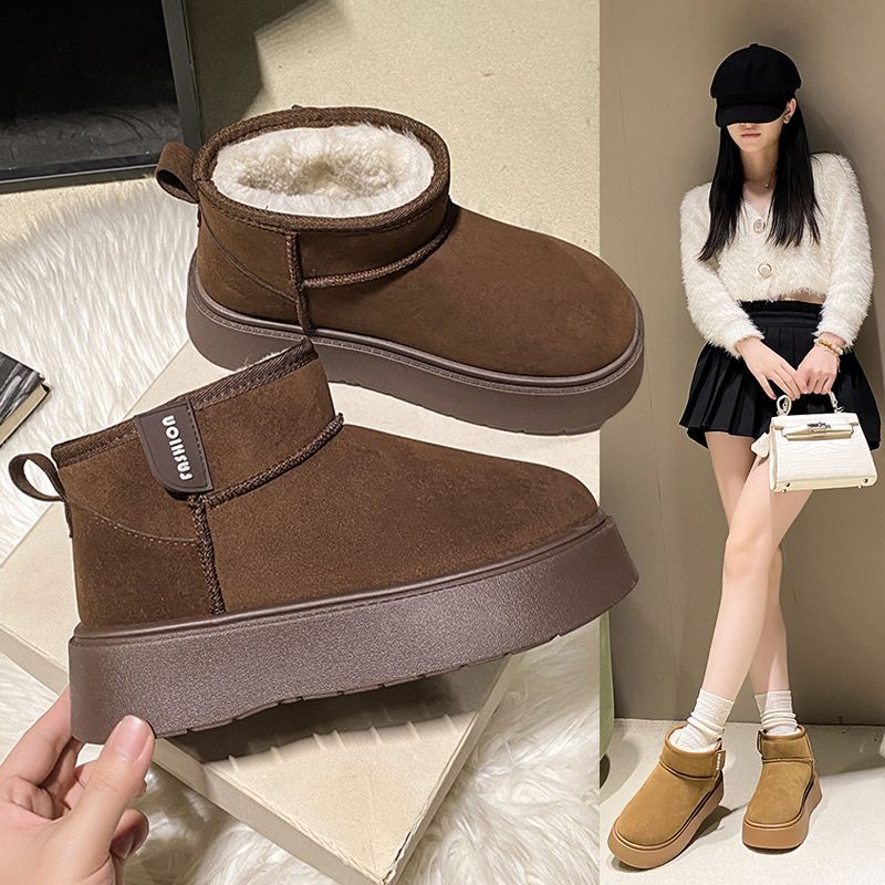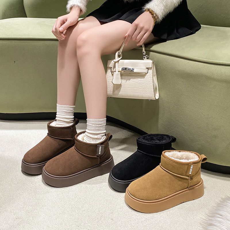雪地靴女冬季2025新款厚底时尚网红加绒加厚外穿防滑保暖棉鞋短筒