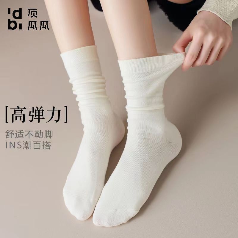 顶瓜瓜袜子女中筒袜春夏季透气防臭休闲堆堆袜时尚简约百搭月子袜