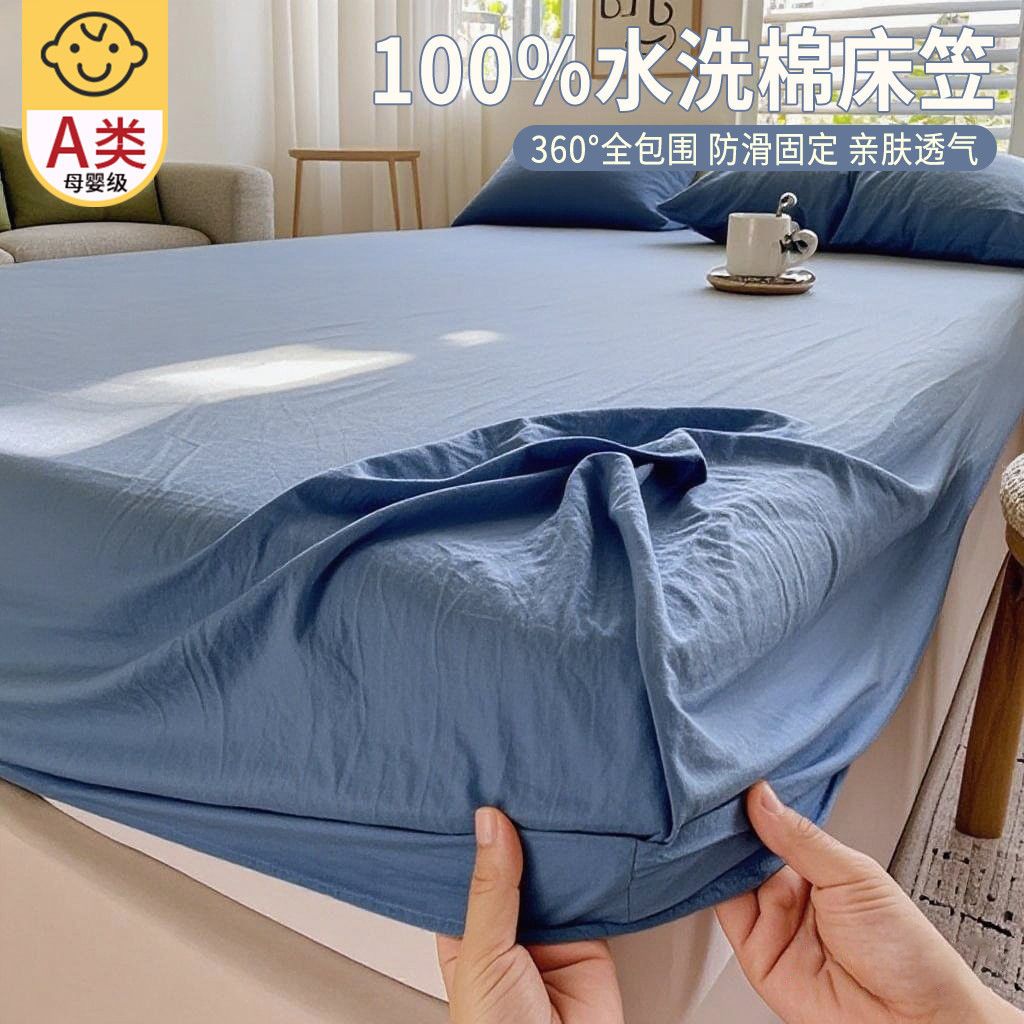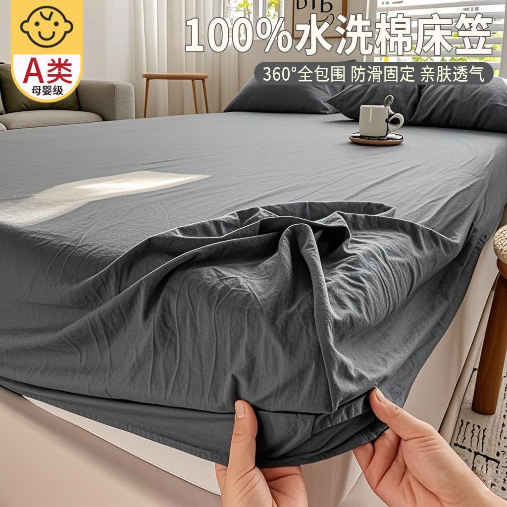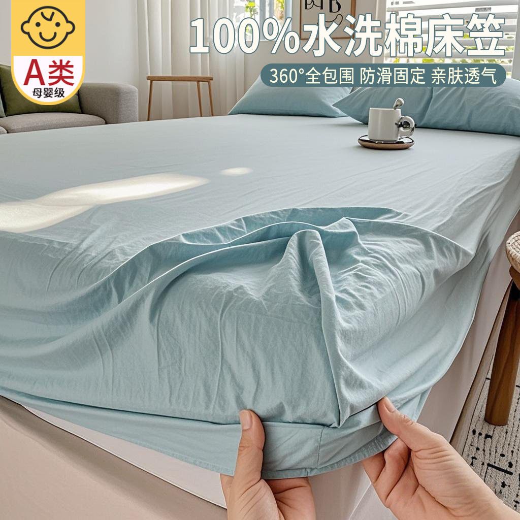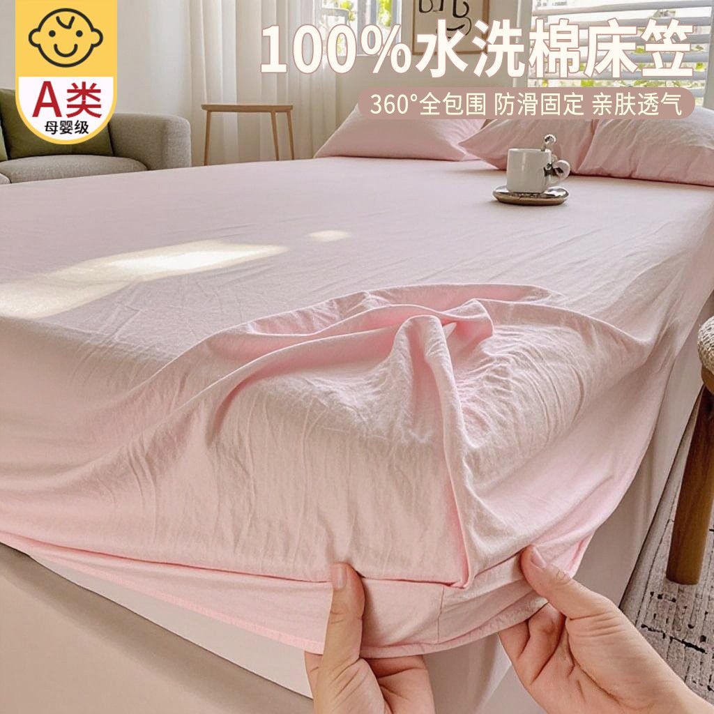 纯色水洗棉床笠三件套夏季新款居家床垫全包防尘固定保护套可机洗
