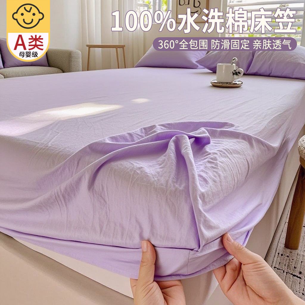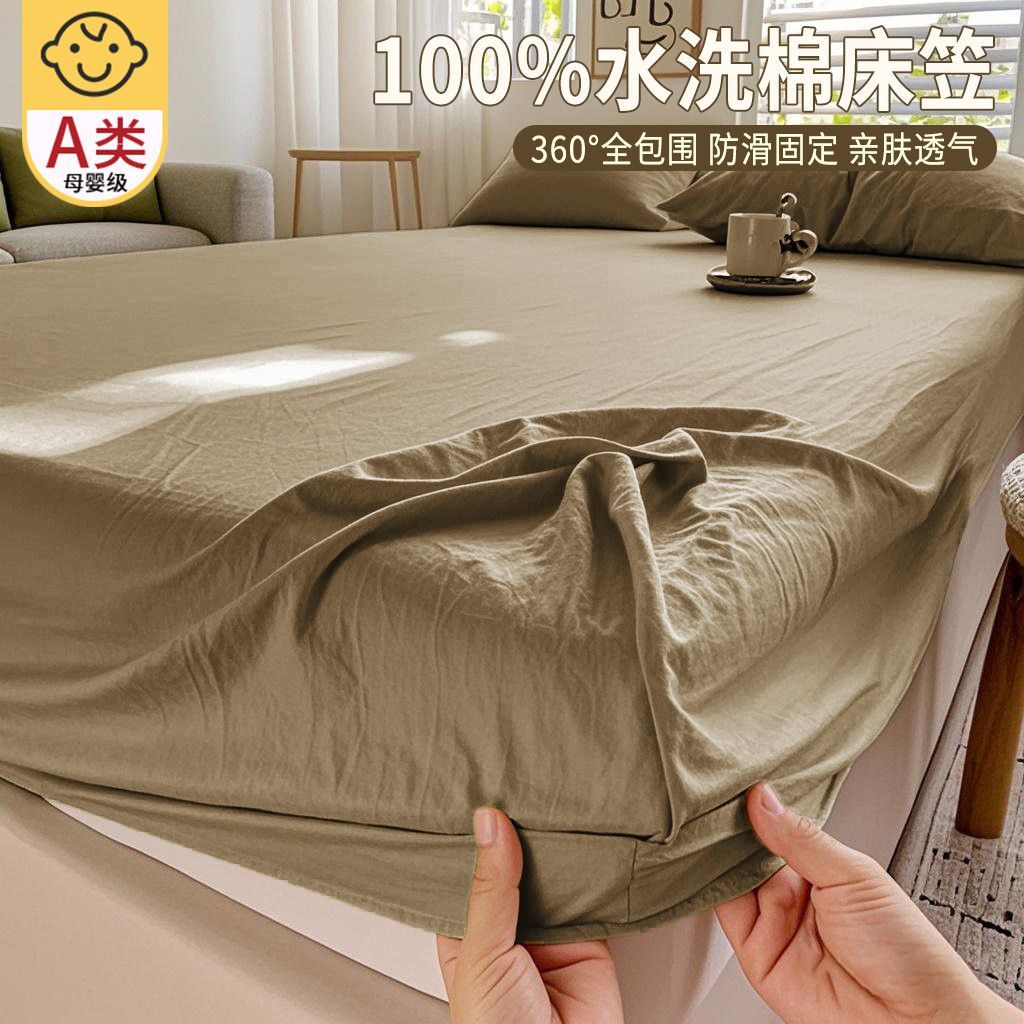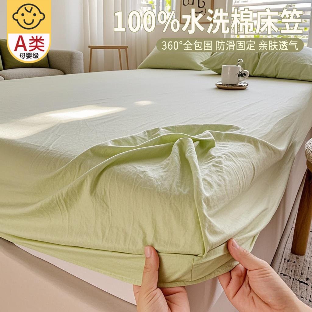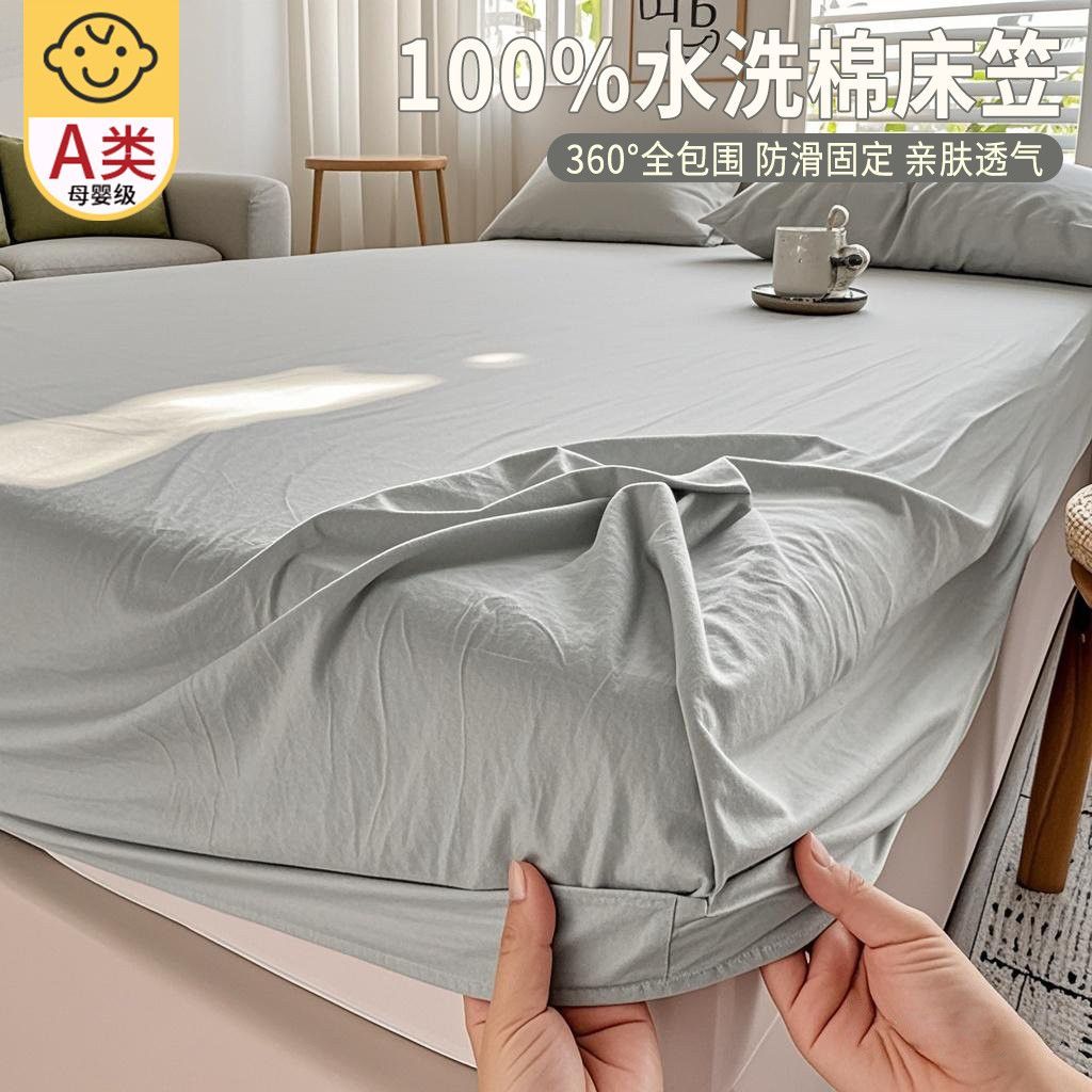 纯色水洗棉床笠三件套夏季新款居家床垫全包防尘固定保护套可机洗