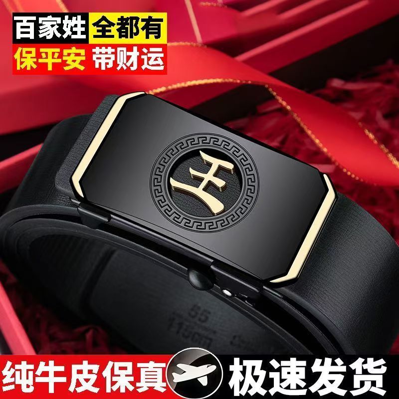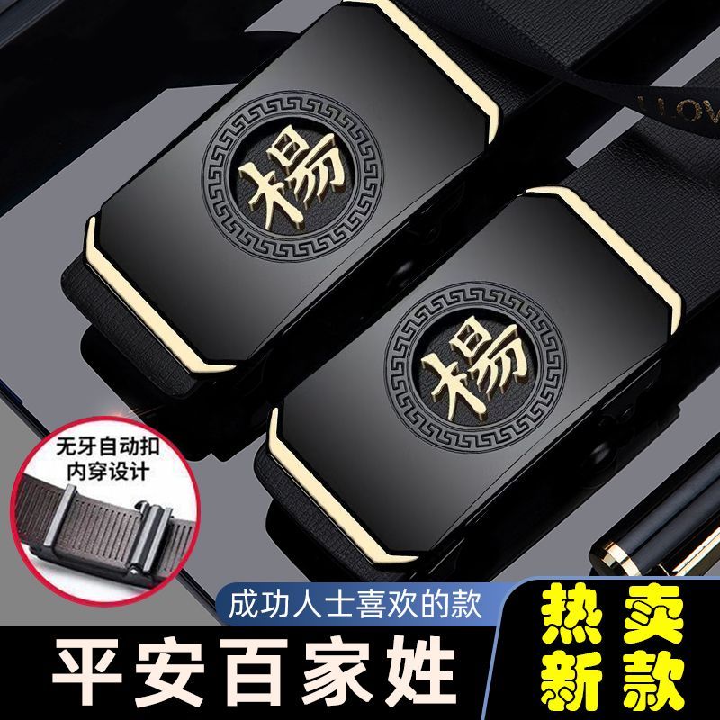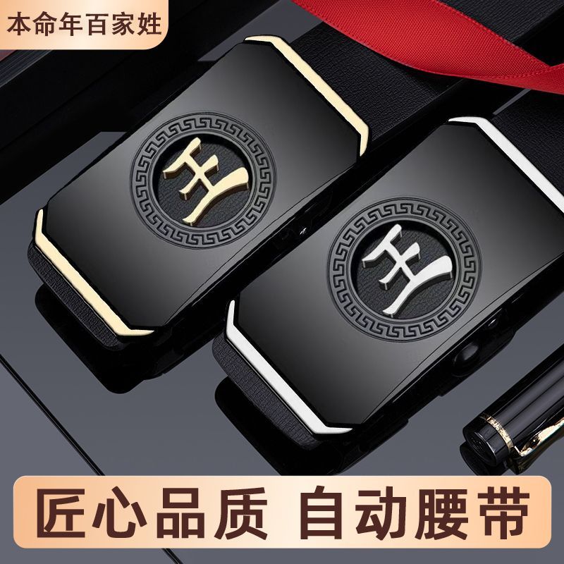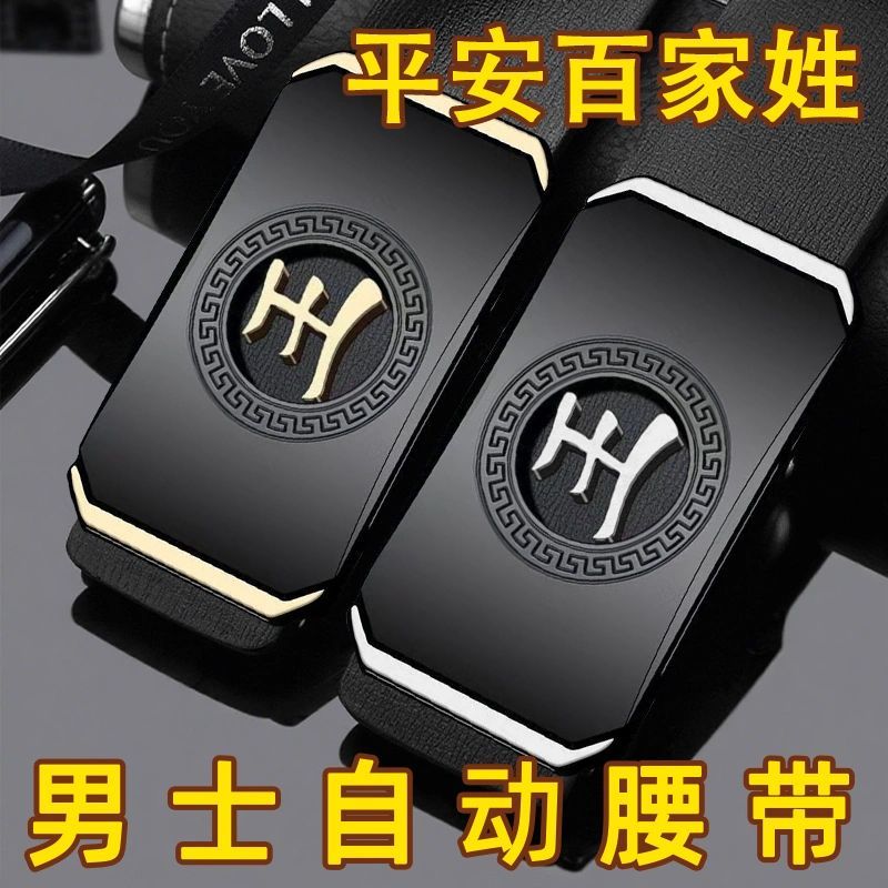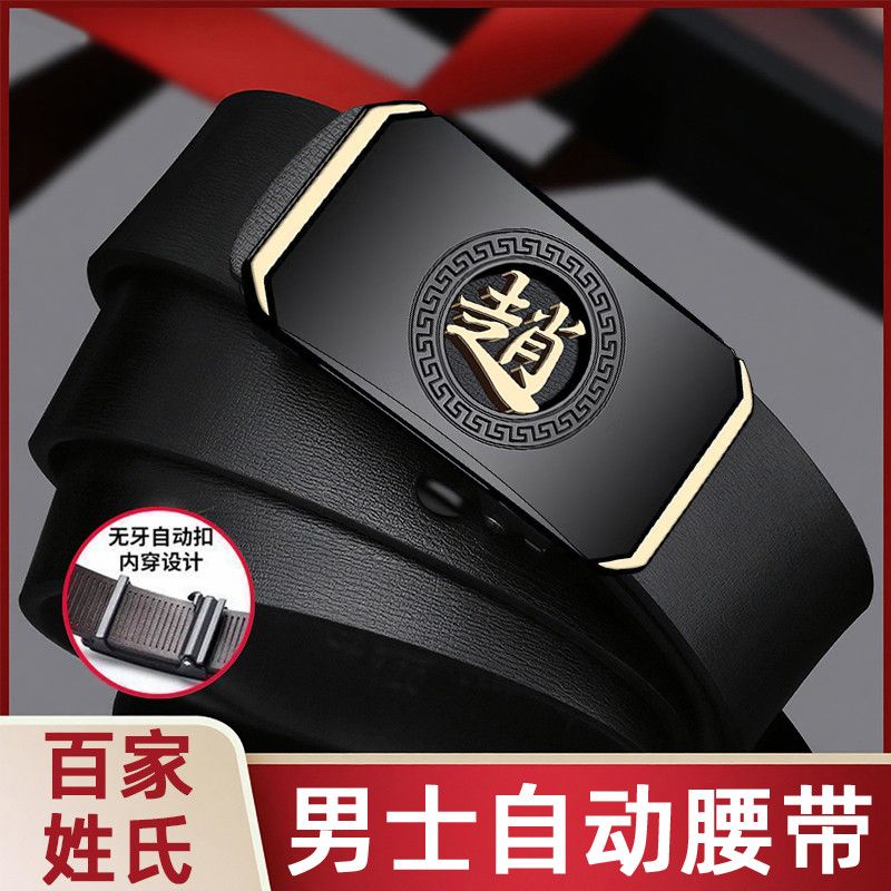 皮带男款百家姓自动扣刻字内穿腰带中老年商务休闲爸爸裤带潮流男