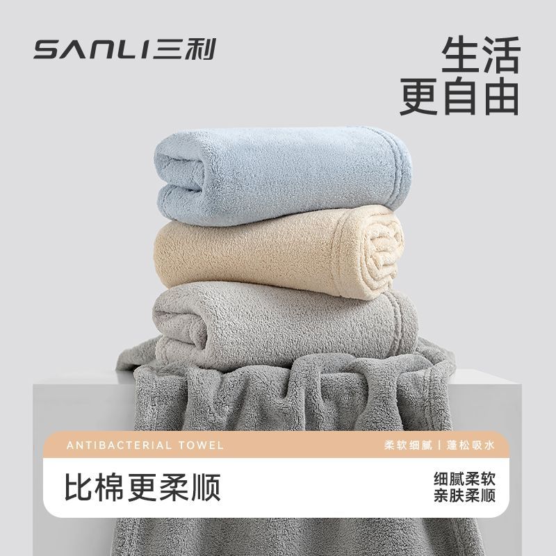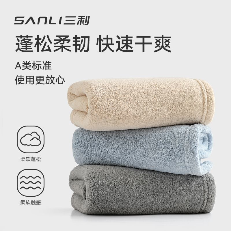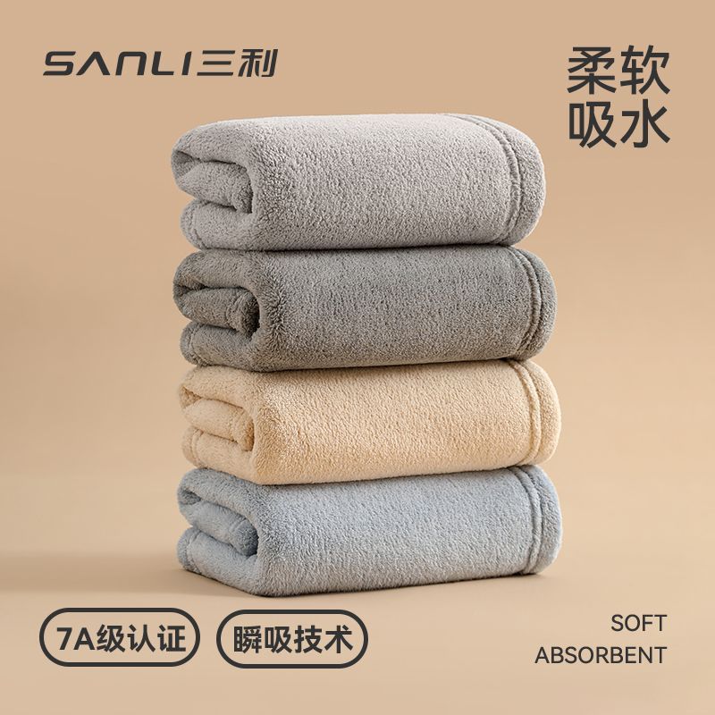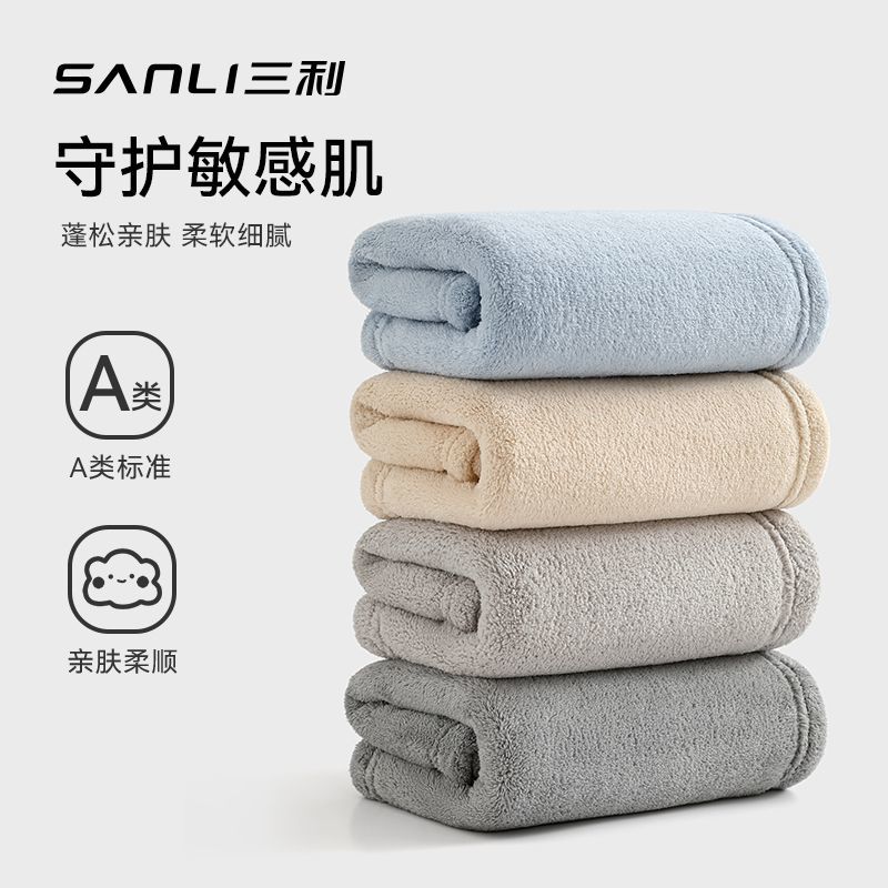 三利毛巾7A抗菌柔软吸水速干不掉毛珊瑚绒A类面巾家用男女擦脸巾