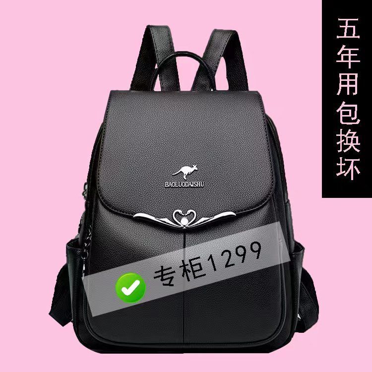 堡萝袋鼠正品真皮双肩包女2022新款大容量时尚百搭软皮女士旅行包