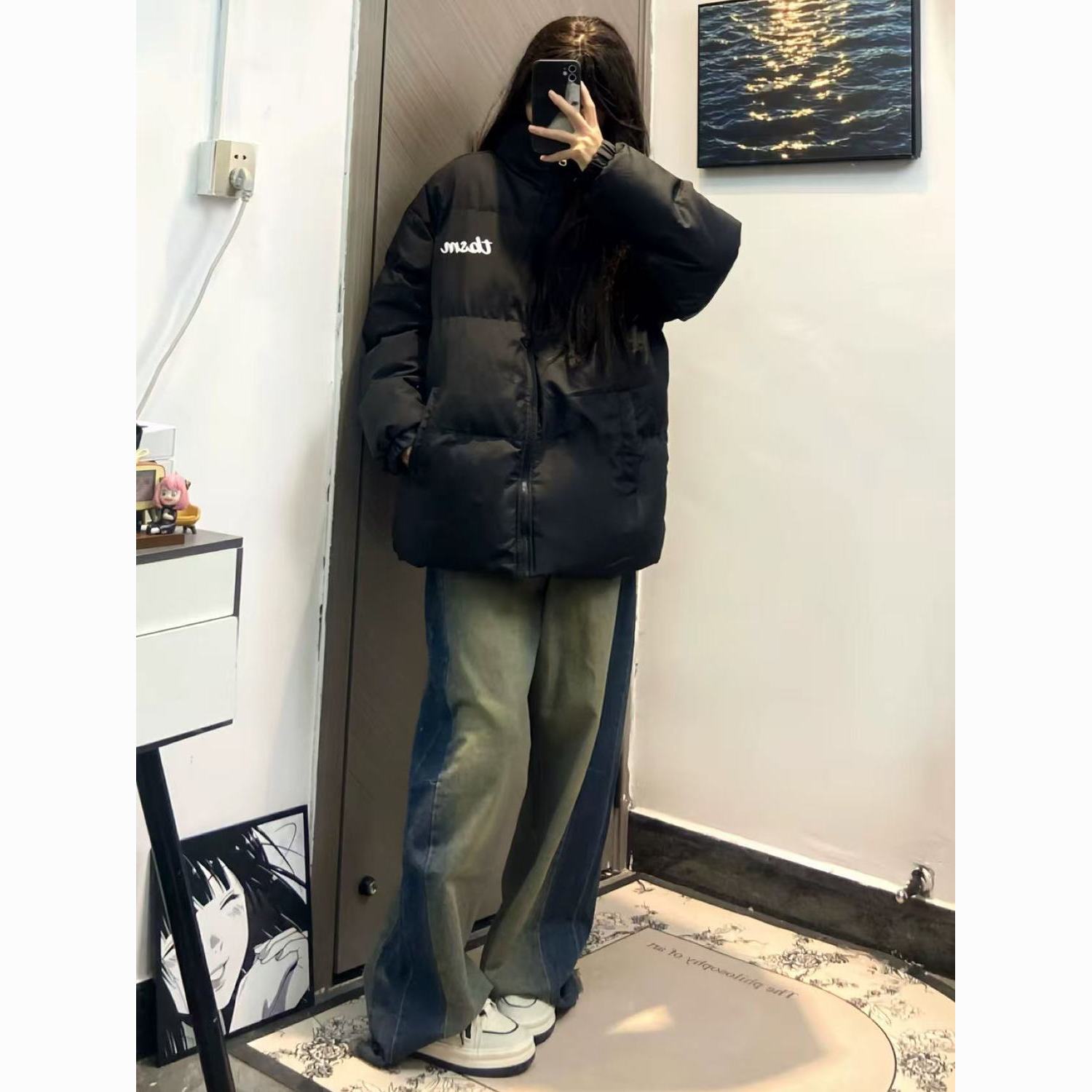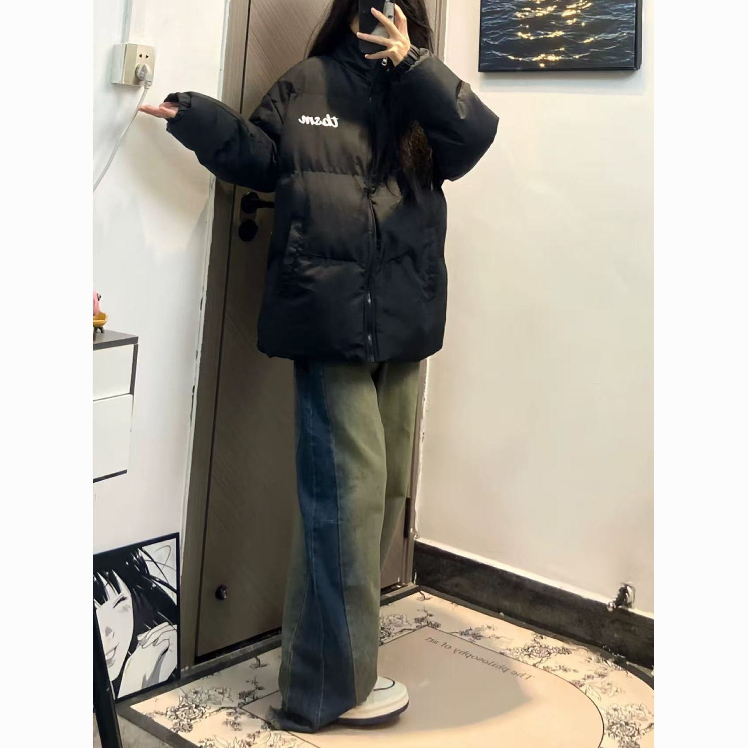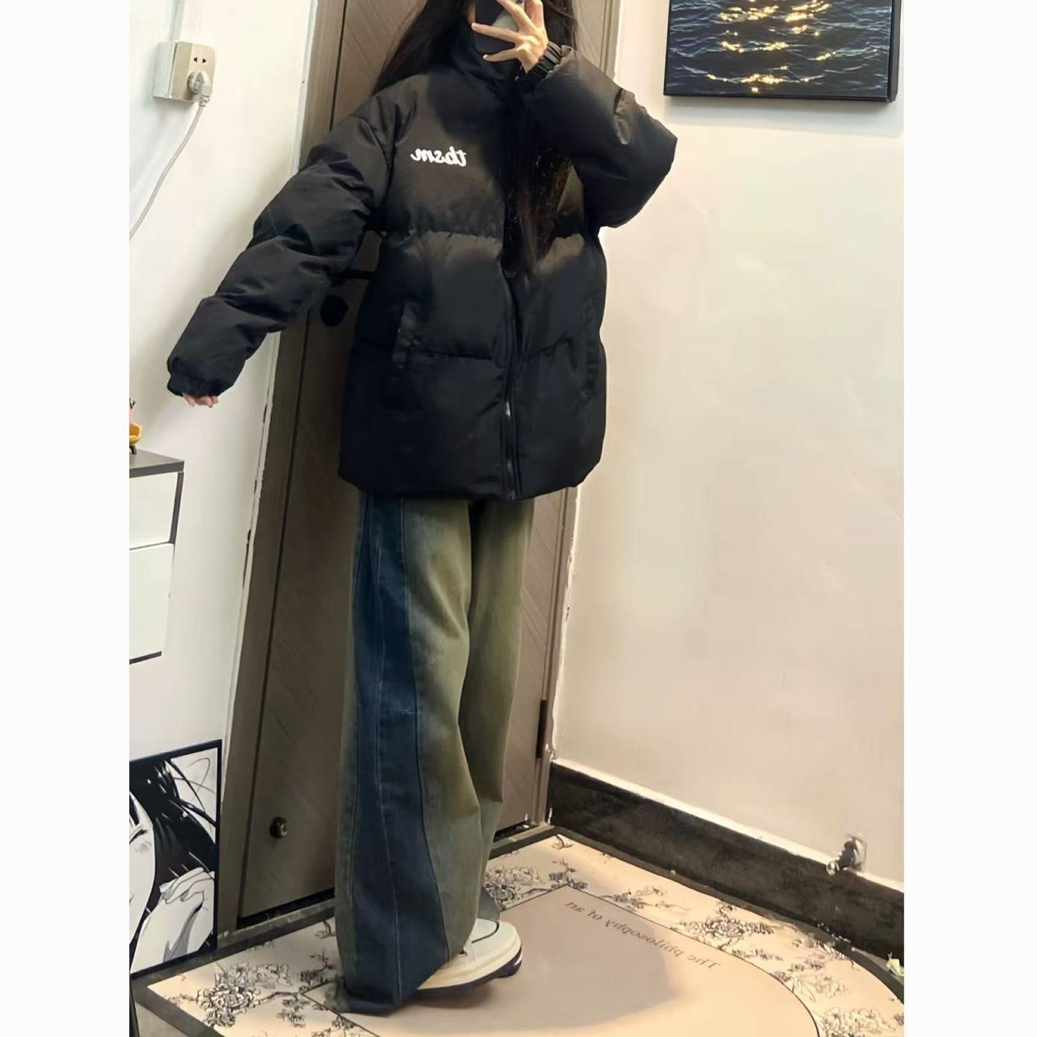 2025新款美式字母印花立领棉服女高街韩版慵懒加厚保暖学生面包服
